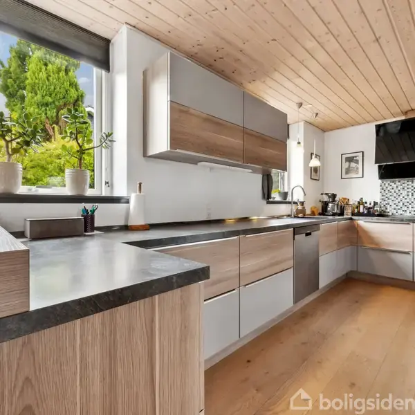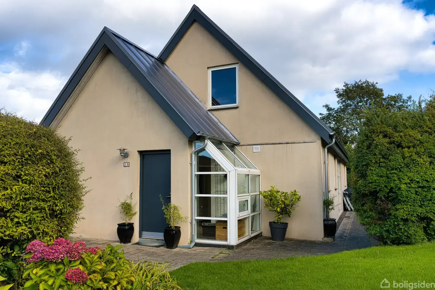 Planløsningen og de 156 m2 taler ind i den moderne børnefamilies behov for gode værelser og åbne leverum; den store have og solvendte terrasse indbyder til et dejligt udeliv; og adressen er noget så god i et område med rolige veje og nærhed til midtbyen.I stueplan kan I alle samles i den vinklede stue, der ligger i åben forbindelse til køkkenet og er som skræddersyet til, at I kan indrette jer med både sofamøbler og et spiseområde. Også køkkenet er meget rummeligt, og tilsammen danner de rammern