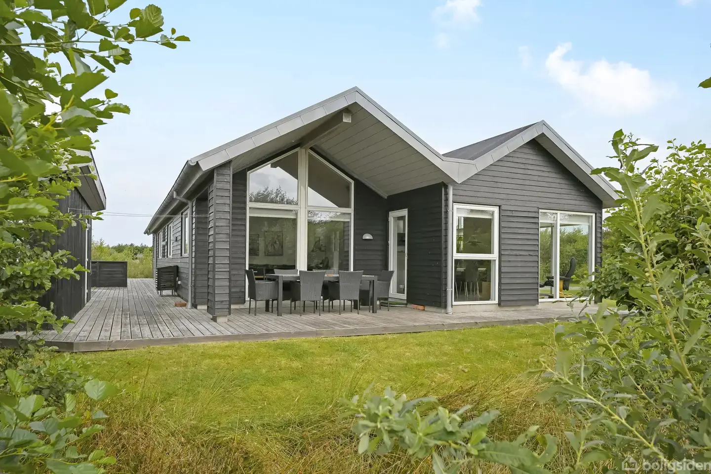 Drømmer I om et smukt og særdeles velholdt sommerhus fra 2011 på en dejlig naturgrund, vil dette sommerhus helt sikkert være noget for jer. Huset har en god planløsning og er moderne indrettet med gode og pæne materialer. Der er arbejdet med lysindfaldet, så alle rum fremstår lyse og venlige. De store terrassemiljøer er placeret, så solen kan nydes hele dagen og på varme sommeraftner. Huset har aldrig været tilmeldt udlejning og fremstår indflytningsklart.I entreen finder I tre gode værelser hve