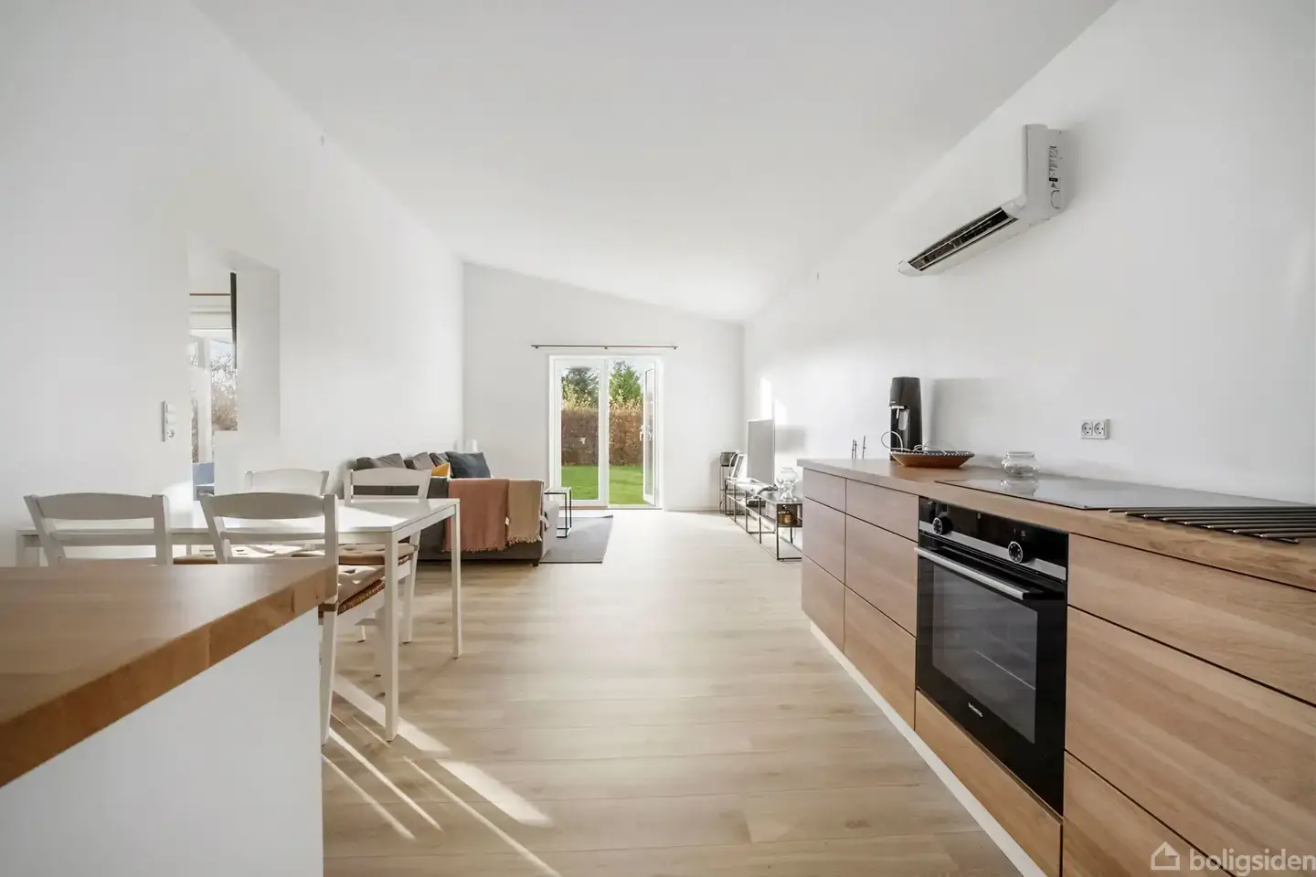 Åbent hus med tilmeldingskrav 2/2 - klik på billede - Drømmer I om et fristed, hvor I kan koble helt af og nyde livet i grønne omgivelser – men stadig tæt på byen? Så skal I se nærmere på denne flotte og indflytningsklare kolonihave i den eftertragtede andelshaveforening Hanevadsholm. Her får I et moderne og yderst velholdt kolonihavehus, hvor der er tænkt på både komfort og funktionalitet – så I blot skal pakke taskerne ud og nyde tilværelsen. Huset er gennemrenoveret i 2020 og fremstår i flot stand med klassisk træfacade og et lyst, moderne indre. Komforten er helt i top – der er installeret varmepumpe, og isoleringen er udført med 250 mm i loft, 200 mm i vægge og op til 250 mm i gulv. Indenfor får I 50 veldisponerede kvadratmeter med loft til kip, hvilket skaber en behagelig rummelighed. Planløsningen byder på et stilrent badeværelse med brus, et stort og lyst opholdsrum med åbent køkken samt et soveværelse, der nemt kan opdeles i to, hvis behovet opstår. Køkkenet er nyt fra 2025 og holder samme flotte stil som resten af huset. Der er desuden mulighed for gulvvarme på badeværelset og i det tilhørende værksted, som også rummer plads til vaskefaciliteter og hobbyprojekter. Fra både stue og soveværelse er der udgang via dobbeltdøre til den dejlige terrasse, hvor solen kan nydes fra tidlig formiddag til sen aften. En del af terrassen er overdækket, så I kan sidde ude, selv når duggen falder. Haven er overskuelig og nem at passe – perfekt til jer, der ønsker mere tid til afslapning end til havearbejde. Men skulle drømmen være højbede og frugttræer, er der god plads til at lade kreativiteten blomstre. Beliggenheden er ideel – huset ligger roligt for enden af en lille, lukket vej i et hyggeligt foreningsmiljø med fællesarealer, legeplads og grønne omgivelser. Fra haven har I kort afstand til de naturskønne stier langs åen og Ejby Mose, mens hverdagens indkøb kan klares i Skovlunde Centret blot ca. fem minutters kørsel herfra. Derfra er der også nem adgang til S-toget, så I hurtigt kan komme frem og tilbage mellem kolonihavelivet og byen.