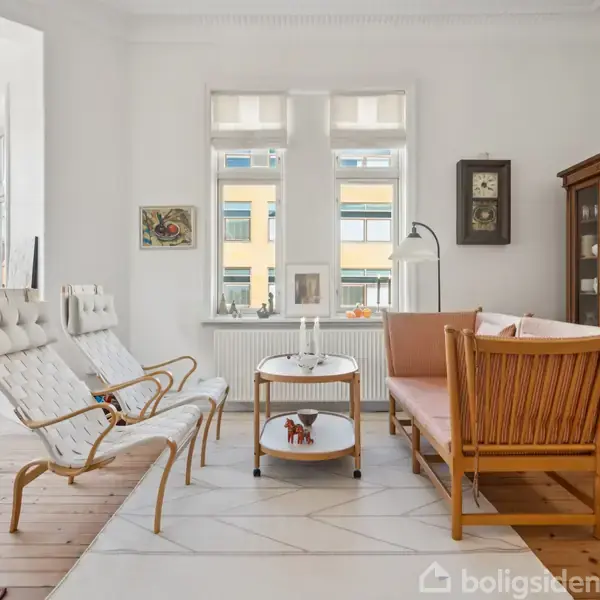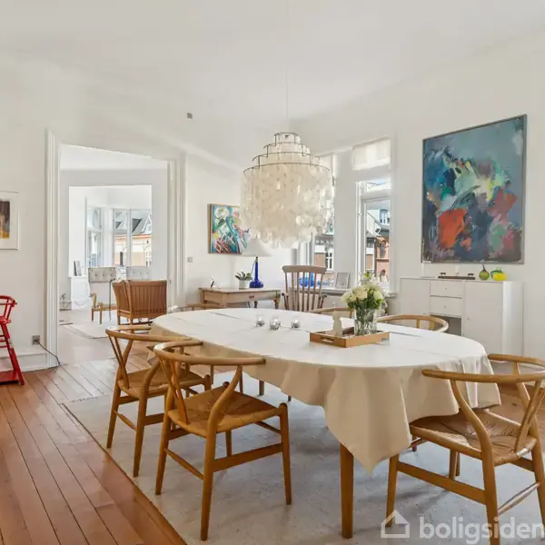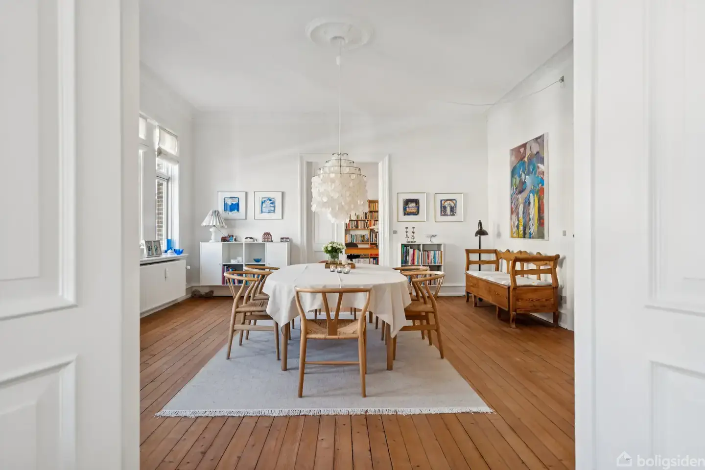 SJÆLDENT UDBUDT HJØRNELEJLIGHED MIDT I BYEN · Herskabslejlighed uden ende · Smukke lysindfald pryder hele hjemmet · Træd ind til originale detaljer og høj kvalitet · Midt i byen, men alligevel helt stille indenfor Original herskabelighed og flot vedligehold væver sig ind og ud af lyse rum og blændende solstråler i en sjælden perle af en lejlighed. Hverken indretningsmuligheder eller armbevægelser er begrænsede, når I træder indenfor til rummelighed og plads uden ende: erhvervslivet trives fint