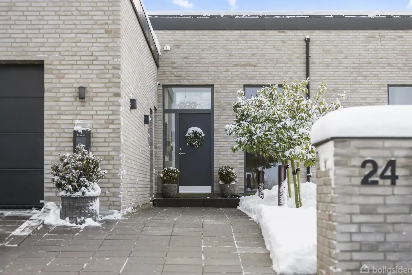 Her er tale om en moderne og velindrettet villa på 259 kvm bebygget areal, med 55 kvm integreret stor garage. Villaen er opført i 2017 og her får du en helt igennem tidssvarende bolig med moderne indretning, soveværelse med walk-in og eget badeværelse med badekar, 3 gode værelser i den anden ende af huset inkl. nr. 2 badeværelse med bruseniche.Hjemmet byder på højt til loftet og store vinduespartier, der lukker masser af naturligt lys ind og skaber en åben og indbydende atmosfære. Den gennemtænk