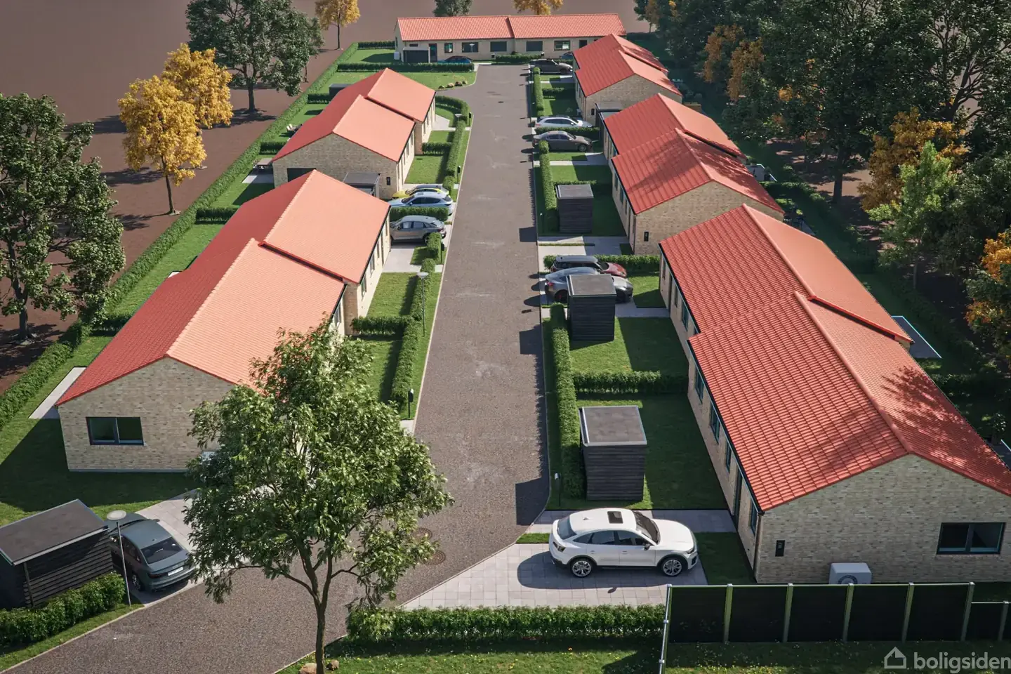 Eksklusivt og nyt, ja faktisk så nyt at det ikke er bygget endnu. Forventet overtagelse 2027, 2. kvartal. Projektsalg i Greve Landsby - 12 rækkehuse, skabt med klassiske linjer og nutidens behov for øje. Landsbyen, kendt for sin hvide kirke fra 1175 og præstegården, som dannede rammen om den oprindelige julefilm “Nøddebo Præstegård”, emmer af historie og lokal charme. Markerne, der engang tilhørte områdets landmænd, er nu forvandlet til et sted, hvor nye hjem vokser frem. Solrige fliseområder skaber rammerne for lange sommeraftener, hvor et glas vin kan nydes, mens blikket hviler på den grønne græsplæne. Hver bolig har desuden to parkeringspladser og et praktisk udhus, der tilføjer funktionalitet til hverdagen. For to af husene strækker udsigten sig mod åbne marker, hvor himmel og jord smelter sammen i en beroligende harmoni. Nærheden til indkøb, skole og hverdagens nødvendigheder fuldender oplevelsen af et hjem, hvor livet leves med lethed. De smukke, lyse mursten og saddeltaget med røde teglsten i 25 graders hældning - en æstetisk detalje, der tilpasser sig landsbyens krav og fuldender husenes harmoniske fremtoning. De grå/sorte vinduer med hvide rammer indvendigt tilføjer et eksklusivt præg, der fuldender boligerne med stil og balance. Inde i de 120 kvm venter et gennemtænkt hjem i ét plan. Køkken/alrum og stue flyder sammen i et lyst og åbent rum med direkte udgang til haven – et indbydende område til både hverdagsliv og hyggelige stunder. Svanekøkkenet er en elegant løsning, der passer perfekt til boligens eksklusive udtryk. De to badeværelser er smart placeret – ét ved soveværelset og det andet i værelsesafdelingen, der kan rumme alt fra børneværelser til kontor eller gæsteværelse. Et praktisk bryggers og moderne energiløsninger som gulvvarme og en energieffektiv varmepumpe sikrer en komfortabel og funktionel hverdag. Når aftalen er underskrevet, åbner der sig en verden af muligheder for personlige tilvalg mod en merpris. Besøg Eurodans showroom i Roskilde og lad detaljerne tage form, eller giv køkkenet et unikt præg direkte hos Svanekøkken. Selv elinstallationerne kan skræddersys med hjælp fra elfirmaet – alt inden for en fastlagt periode. Her mærkes en mavefornemmelse af ro og eksklusivitet – et sted, hvor rammerne for hverdagen og drømmene smelter sammen