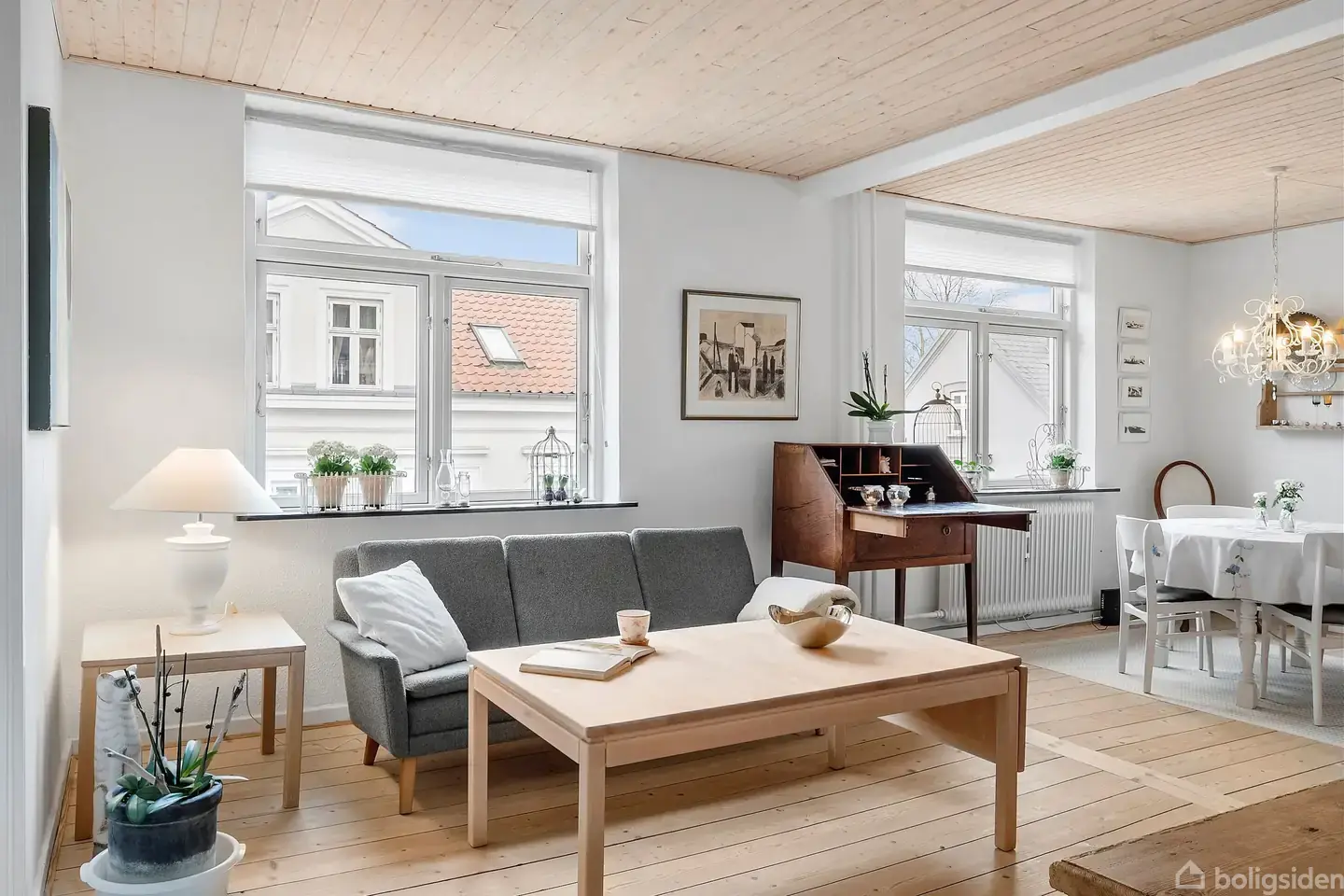 Åbent hus med tilmeldingskrav 3/2 - klik på billede - Central ejerlejlighed ved Vejles pulserende byliv. Denne ejerlejlighed har en ideel placering, som giver beboerne en bynær og praktisk hverdag i hjertet af Vejle. Lejligheden ligger med kort afstand til Vejles pulserende gågade, hvor der er et væld af shopping muligheder, hyggelige caféer, restauranter og specialbutikker – alt inden for få minutters gang. Det betyder, at man nemt kan nyde byens liv, lige fra en kaffestund til en middag i byen. Til lejligheden hører der parkering i gården, bag ejendommen, hvor du samtidig har fælles gårdhave. Lejligheden byder på en stor, lys og indbydende stue, der fungerer både som opholds- og spisestue, som er perfekt til både afslapning og samvær. Fra stuen er der direkte adgang til soveværelset, med indbyggede skabe med skydelåger, hvilket giver god opbevaringsplads. Yderligere har du et ekstra værelse, der også er tilgængeligt fra stuen, og som har fire indbyggede skabe – ideelt til ekstra opbevaring, børneværelse eller som kontor. Køkkenet ligger lige ved siden af stuen og er både funktionelt og praktisk indrettet med indbygget ovn i arbejdshøjde samt masser af bord- og skabsplads. Badeværelset er praktisk indrettet, så det både rummer bruseniche og udtag til vaskemaskine og tørretumbler. Så du får her en lejlighed, hvor alle daglige behov er dækket inden for hjemmets rammer. Du har naturligvis også et godt stort og tørt depotrum i kælderen, til opbevaring af diverse indbo. I nærområdet er der desuden er der et stort udvalg af indkøbsmuligheder – både mindre specialbutikker og større supermarkeder som Bilka, Netto og Føtex, hvilket gør det nemt at klare dagligdagens indkøb uden besvær. Vejle tilbyder også et bredt udvalg af fritidsaktiviteter, sportsklubber og kulturtilbud. Byens smukke natur er aldrig langt væk, og man kan hurtigt finde grønne oaser og naturskønne områder som Vejle Fjord, Dyrehaven og Nørreskoven, hvor man kan gå ture eller cykle. Dette giver mulighed for et aktivt udeliv og en god balance mellem byliv og natur. Med parkering i gården og Vejle Banegård inden for kort afstand er pendling til og fra byen nemt, uanset om man har bil eller foretrækker offentlig transport. Alt i alt giver denne bolig en ideel kombination af moderne byliv og alle dagligdagens bekvemmeligheder i nærmiljøet.