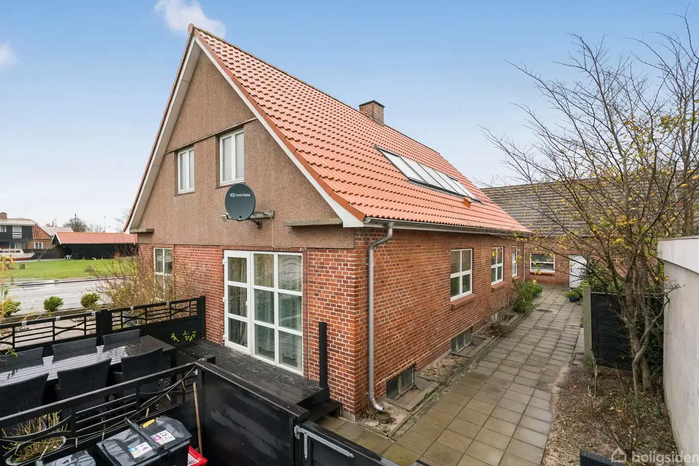 Åbent hus med tilmeldingskrav 18/2 - klik på billede - På Vestergade 1 finder man en rummelig villa i to plan på 194 kvadratmeter og en kælder på 55 m2 samt tilhørende udbygning på 145 m2 og carport på 29 m2. Villaen har igennem årene gennemgået en større renovering og fremstår i en rigtig pæn og indbydende stand. Vinduerne er skiftet på nær i kælder og gavl. Villaen er hulmursisoleret. Taget er skiftet og fuld isoleret på loftet. Solpaneler fra 2006 til både brugsvand og varme. Fjernvarme er indlagt. Den tidligere garage er blevet til et stort, lyst og lækkert badeværelse med gulvvarme, spabad og bruseniche. Brændeovn er fra 2019. Stueplan indeholder både rummeligt køkken og stue. Soveværelse med udgang til træterrasse og et kontor/gennemgangsværelse. Gæstetoilet, vaskerum og ind- /udgange. Et kæmpe plus i stueplan er de lyse rum og den gode loftshøjde. 1. sal er med stue og to værelser, hvoraf det ene er med eget walk-in closet. 1. sal er perfekt, som børneafdeling. Kælderen er med nedgang, viktualierum og tre disponible rum. Kælderen er formidabel til diverse opbevaring. Gildesalen er på 70 m2 med varmepumpe, fuld isoleret og med vinduer, døre samt port skiftet. Resterende 75 m2 er disponibelt rum og værksted med egen indgang og med fuld udnyttet loftsrum. Udearealet er både nemt og overskueligt og skabt med en masse hyggekroge og terrassearealer. Den ugenerete og aflukkede indergård fuldender villaen på allerbedste vis. Parkeringsmulighederne er ligeledes også ganske optimale. Meget hus for pengene - mulighed for flexbolig - mulighed for at kombinere erhverv med privatbolig - mange kvadratmeter i en rigtig god stand.
