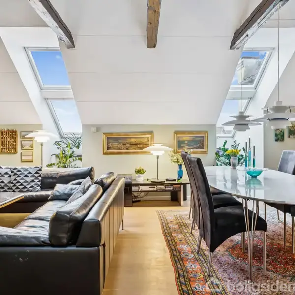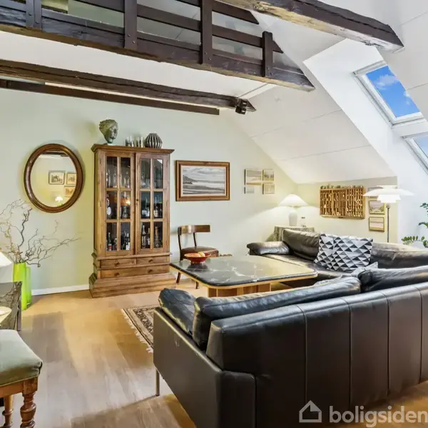 Totalt restaureret ejerlejlighed i byejendom med ialt 4 stk. ejerlejligheder. Bygningen er pudset og gulmalet, der er vingetegltag og tagpap på saddeltage. Velfungerende ejerforening med god økonomi. Her er tale om en virkelig charmerende ejerlejlighed, der er gennemgribende restaureret i flot stil. Der er stue med loft til kip med synlige hanebånd og hems, der er åben forbindelse til nyere lækkert køkken med udgang til ny syd-vestvendt og helt ugeneret altan på 16 kvm. Der er gulvvarme i stue og køkken. Ellers er lejligheden indrettet med god entre, mellemgang, stort soveværelse med mange skabe, lækkert badeværelse med bruseniche og plads til vaskemaskine og tørretumbler, stort lyst værelse, som let kan opdeles i 2 rum. Der forefindes virkelig fint og stort loftsrum med gangbro og indrettede hylder m.m. til oplagring. Fjernvarme, som fordeles af fa. Palle Mørch. God trappeopgang, som renholdes på skift af brugerne. Fælles gård med fælles cykelskur