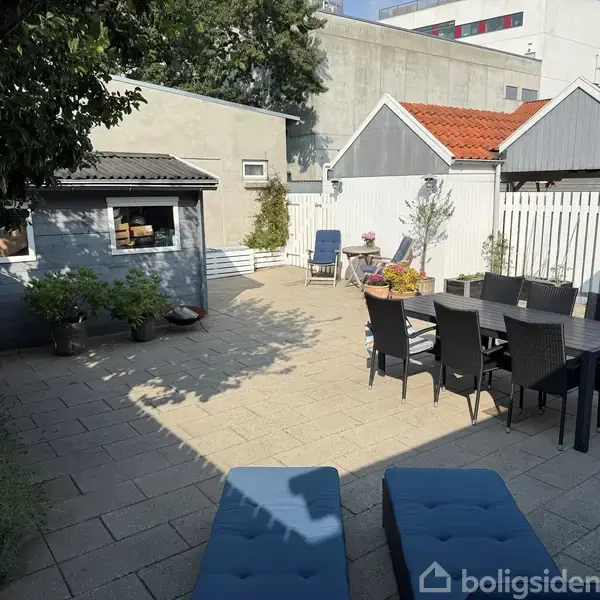 Velkommen til dette charmerende midtbyhus, der strækker sig over 168 kvadratmeter og byder på en indbydende atmosfære, hvor moderne komfort møder klassisk stil. Boligen, der er bygget i 1900, er løbende renoveret og fremstår tidssvarende lys og lækker. Boligen har status som ejerlejlighed og er en del af en ejerforening bestående af 3 enheder, men i praksis fungerer hver enhed som sin egen og boligen har har sin engen charmerende gårdhave og egne parkeringspladser. Her får du både central pla