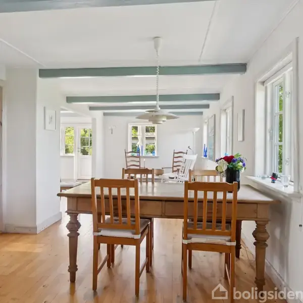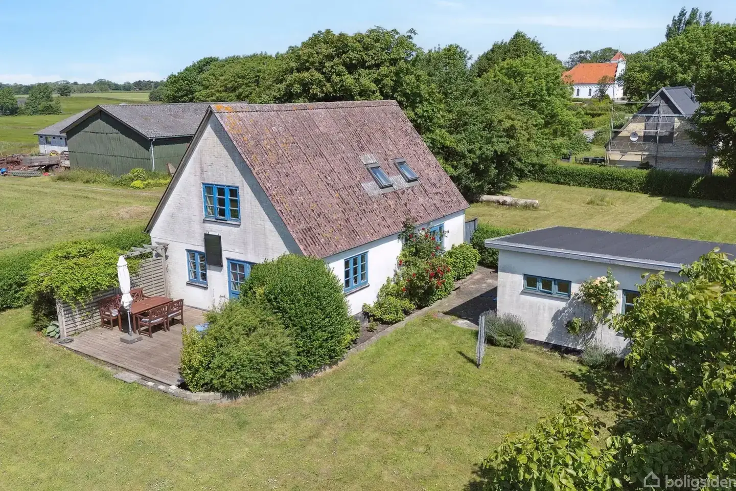 Samsø Mægleren byder dig velkommen til denne skønne villa, med en dejlig beliggenhed i den hyggelige landsby Ørby, der ligger i Samsøs sydlige del. I denne villa får du et hovedhus der løbende er renoveret og står indflytningsklart. Her får du lyse og luftige rum, med højt til loftet både i stueetagen og på 1. sal. Stueplan byder på en stor vinkelstue med parketgulve og god plads til både spisebord og tv-stue. Fra stuen er der direkte udgang til den sydvendte terrasse ved villaens gavl, herfra har du et godt overblik over hele grunden. Stueplan byder desuden på et funktionelt køkken med udgang til endnu en terrasse, en forgang, et toilet samt en trappeopgang til 1. sal. I hele stueetagen kan de fritlagte bjælker findes i lofterne, ligesom der i de fleste rum findes gulvvarme. 1.sal byder på to store værelser samt et repos, alle med tæpper på gulvene, desuden findes et stort badeværelse med brusekabine. Udover et skønt hovedhus, får du til denne villa også et anneks på et hele 42 kvm fra år 2010. Annekset ville egne sig fortræffeligt til gæstehus for besøgende, hjemmekontor eller atelier. Her får du, udover et stort opholdsrum med egen udgang til haven via terrasse med pergola, også et stort badeværelse samt en entré/bryggers. Haven er en sand oase med et væld af frugttræer og buske, herunder figentræ, pæretræ, hasselnød, valnød, sveskeblomme, kvæde- og æbletræ. Her er rig mulighed for at nyde naturen og lade din drøm om et grønt frirum få frit spil. I bunden af haven findes desuden en garage, der af sælger primært bliver benyttet til opbevaring af havemøbler. Fra villaen er der kort afstand til både skov og strand, idet Brattingsborg skov med den bagvedliggende strand, ligger i gå-afstand fra denne villa. Her finder du gode stier til både gå- løbe- og cykelturer rundt i skoven. Villaen der byder på sjæl, funktionalitet og en fantastisk beliggenhed, må benyttes som både helårs- og fritidshus, og står klar til at blive dit nye hjem. Tøv ikke, kontakt Samsø Mægleren på tlf. 70605033 og book en fremvisning allerede i dag.