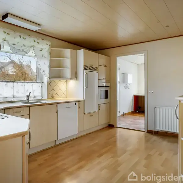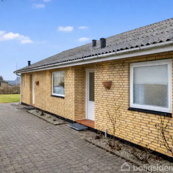 Åbent hus med tilmeldingskrav 17/3 - klik på billede - Velholdt etplansvilla med god planløsning Her får du en klassisk og velindrettet etplansvilla med en funktionel planløsning, gode værelser og en hyggelig, overdækket terrasse, der forlænger udesæsonen betydeligt. Boligen byder velkommen i en entré med adgang til fordelingsgang. Herfra er der adgang til tre regulære værelser, som alle har en god størrelse og fine indretningsmuligheder – oplagte som børneværelser, soveværelse eller hjemmekontor. Badeværelset fremstår i original stil med kar, bruseniche og god plads, og derudover er der et praktisk bryggers med egen indgang – ideelt til hverdagens gøremål og opbevaring. Køkkenet er lyst og funktionelt indrettet med god skabs- og bordplads samt spiseplads. I forlængelse heraf ligger den rummelige stue med et skønt lysindfald fra de store vinduespartier. Her er god plads til både sofa- og spiseafdeling, og der er direkte udgang til den overdækkede terrasse. Den overdækkede terrasse fungerer som en hyggelig udestue, hvor man kan sidde i læ og nyde haven fra tidligt forår til sent efterår. Haven er overskuelig og primært anlagt med græs – nem at holde og med plads til leg, køkkenhave eller blomsterbede. Til ejendommen hører desuden en garage. En bolig med en veldisponeret planløsning og et solidt udgangspunkt – perfekt for køberen, der ønsker at sætte sit eget præg og modernisere efter behov.