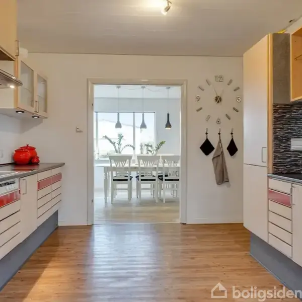 Velkommen til dette dejlige hus i Ranum. Grunden rummer en dejlig stor have med mulighed for, at sidde ude på den åbne terrasse eller på den overdækkede terrasse i de blæsende dage. Bilen kan holde i indkørslen hvor der også er en garage. Træder man indenfor har man entré og gangen som giver adgang til hele huset. I gangen er der adgang til et værelse, samt et badeværelse og trappen til 1. sal og kælder. Videre kommer man ind til køkkenet som har en god størrelse at kokkerere i for hele familien