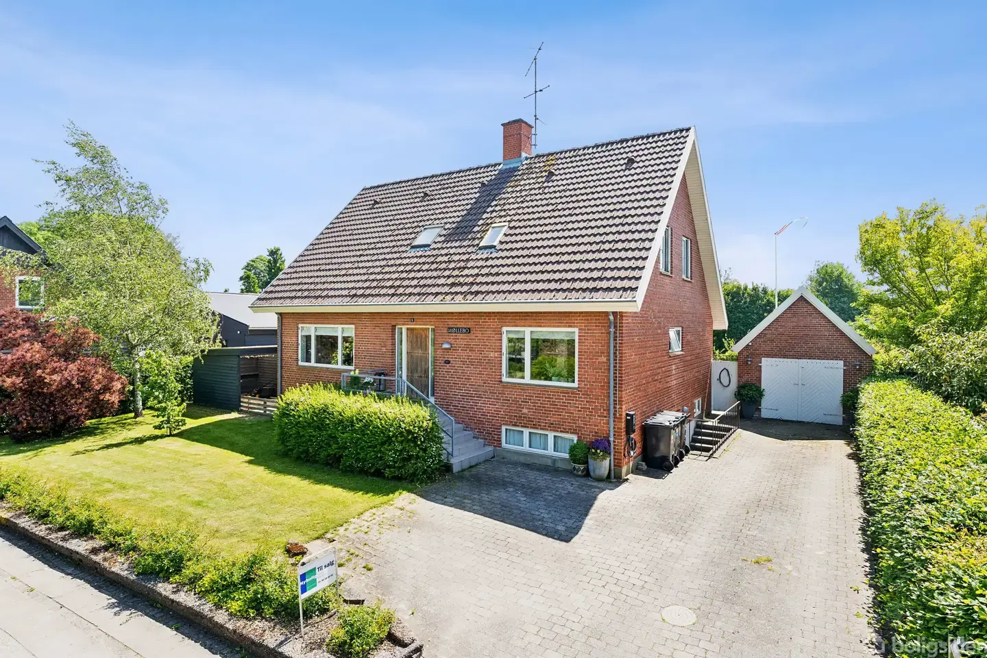 Familievilla med stor have centralt i Bjerringbro Vi udbyder nu en flot og velholdt villa, der giver plads til hele familien, uden I behøver flytte fra byen. Med 261 etagemeter indenfor og godt 1.000 kvadratmeter udenfor er 'plads' nøgleordet her på adressen, og den placerer jer ovenikøbet i smeltediglen mellem by og natur. I får nemlig Gudenåen til den ene side og skoven til den anden, alt imens der er gåafstand til både skole, dagtilbud, fritidsliv og indkøb. Selve huset rummer en klassisk i