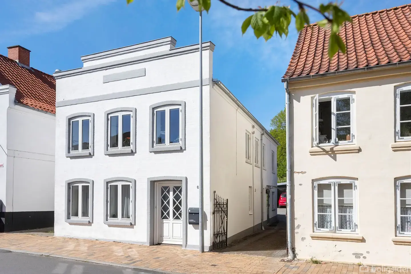 Åbent hus med tilmeldingskrav 7/3 - klik på billede - Karakteristisk byhus med kant Et charmerende og velholdt byhus, hvor historiske detaljer og sjæl er bevaret med stor respekt. Du bor midt i byen, kun to minutters gang fra gågaden med dens hyggelige caféer og butikker. Du er ligeledes tæt på alle hverdagens fornødenheder og Damparken med grønne arealer og legepladser. I stueplan mødes du af en indbydende entré, som fører videre til to gode værelser og et soveværelse med udgang til den private gårdhave. Her finder du også et badeværelse, et separat gæstetoilet samt et praktisk bryggers med opbevaringsplads og vaskefaciliteter. På førstesalen åbner hjemmet sig op med skønne opholdsrum. Her finder du en hyggelig stue og en spisestue med kig til haven, samt et køkken. Et centralt rum binder etagen sammen og skaber en lys og luftig atmosfære takket være det store ovenlysvindue, der giver et dejligt lysindfald og en åben rumfornemmelse. Udendørs får du en stemningsfuld gårdhave, perfekt til stille morgenstunder og hyggelige aftener under åben himmel. I et separat og praktisk værksted får du muligheden for at udfolde din kreativitet eller hobbyer. Ydermere får du en carport med tilhørende værksted, som også kan bruges som opbevaring eller til cykler. Haven er overskuelig med grønne omgivelser og plads til både afslapning og leg. Dette hjem er ideel for dig som ønsker at bo centralt og samtidig sætter pris på charme og historiske rammer.