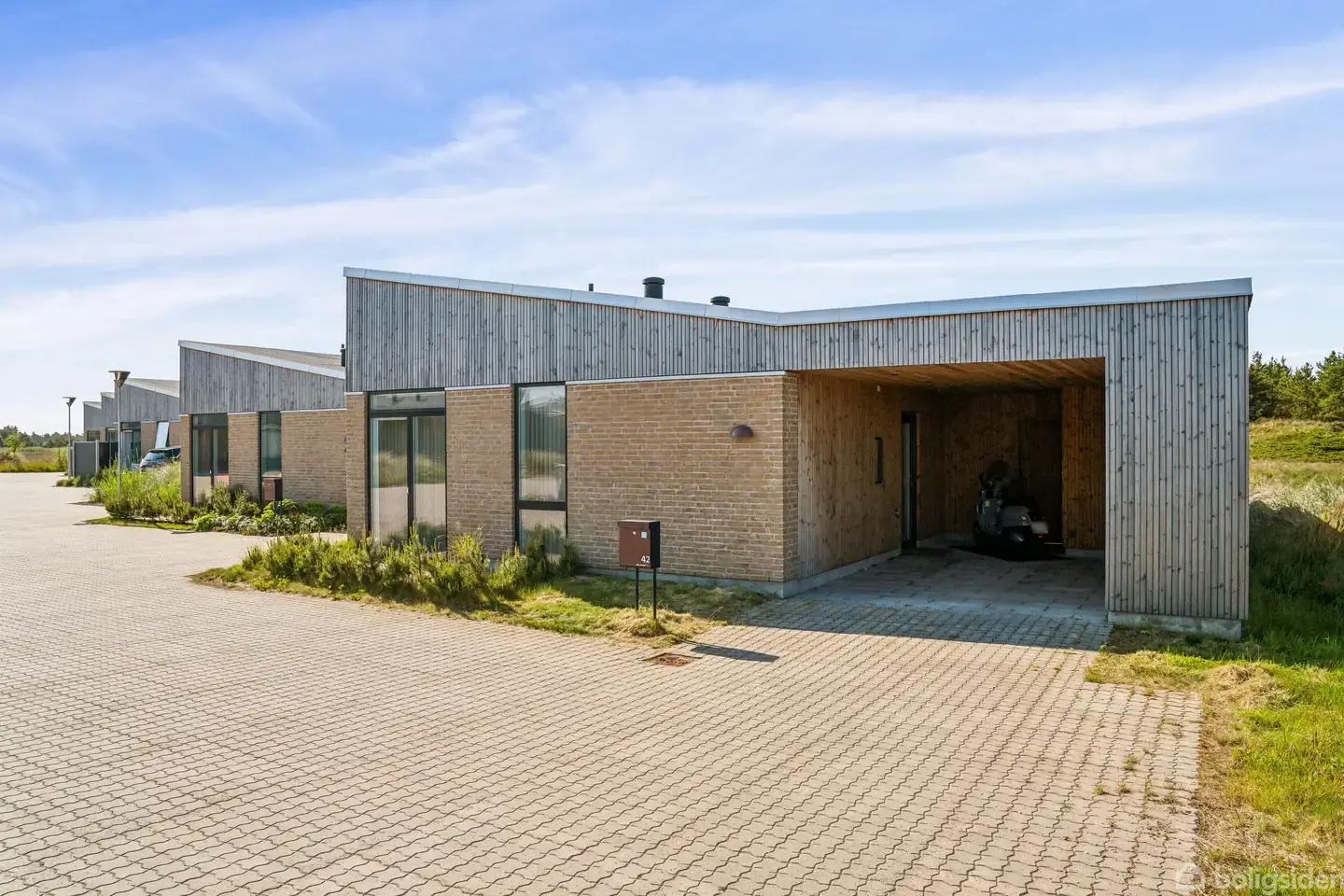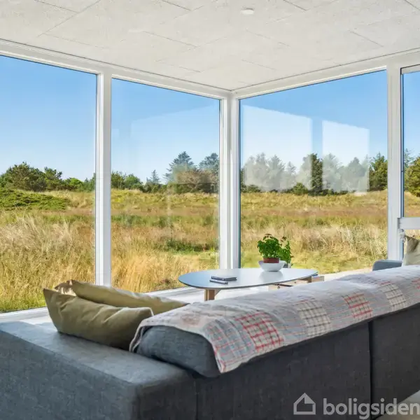 FANTASTISK UDSIGT TIL FREDET NATUR · Med naturen uden for døren · Udsigt inde som ude · Lyse, lækre og moderne rammer · I Vesterhavets kulisse · Fritidshus eller helårshus – du bestemmer · 100 meter til indkøb · Vedligeholdelsesfrit Velkommen hjem i naturen, og velkommen hjem i Vesterhavsparken. Her kombineres moderne komfort med naturskøn idyl i et hus fra 2022, der nu venter på en ny ejer. Du kan flytte ind i et komplet indflytningsklart hjem, og når du åbner dørene op til klitlandskabet, er