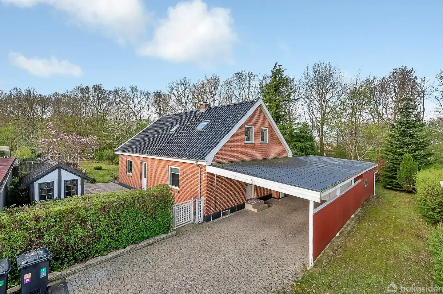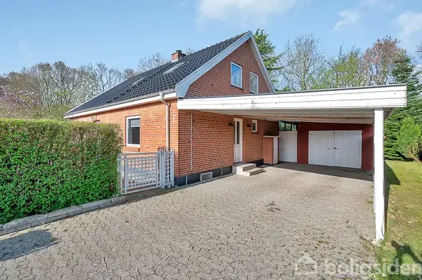 Velkommen til Vesterheden 7 – en nydelig rødstensvilla med sort tegltag og en skøn beliggenhed i Houlkær. Her får du en bolig, der rummer hele familien, både med gode indendørs kvadratmeter og en dejlig, ugenert have. Når du træder ind i huset, mødes du af en lys entré med plads til garderobe. Herfra ledes du videre til det malede køkken, der ligger i vinkel og åbner op mod alrum og TV-stue – et skønt, sammenhængende opholdsrum med udgang til en solrig fliseterrasse og den hyggelige have.Stuepla