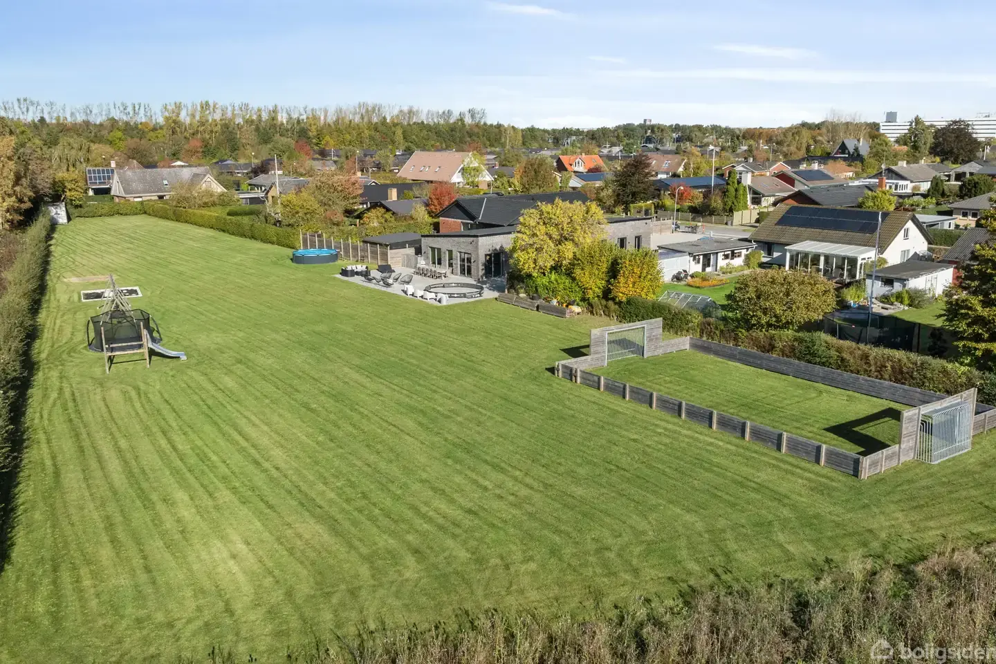 DET HER ER HELT UNIKT - CENTRALT I HVIDOVRE MED NÆSTEN 5000 m2 GRUND!På en helt usædvanlig stor grund på næsten 5.000 m² finder du denne moderne liebhavervilla, opført i 2019 med fokus på rene linjer, kvalitet og komfort i absolut særklasse. Her forenes moderne arkitektur, privatliv og familievenlig idyl på sjældent set vis i Hvidovre.Ejendommen ligger tilbagetrukket fra vejen og byder på en imponerende ankomst med stor, flisebelagt forplads. Bag huset åbner grunden sig op til et sandt paradis –