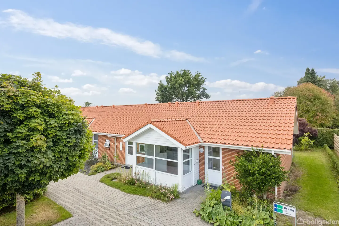 Midt i byen. Netop dér bosætter du dig med denne andelsbolig, hvor der er god plads til besøgende, en lille, dejlig have og et rart fællesskab. Der er tilmed hurtig overtagelse, så boligsøgende par og solister i alle aldre kan straks begynde at glæde sig til at rykke ud til idyllen bare 20 minutter fra indre Aalborg. Godt naboskab og velfungerende by Velkommen til Gandrup, en by, hvor hverdagen glider let, for I har alle hverdagens bekvemmeligheder inden for kort afstand. En kort gåtur til Spar
