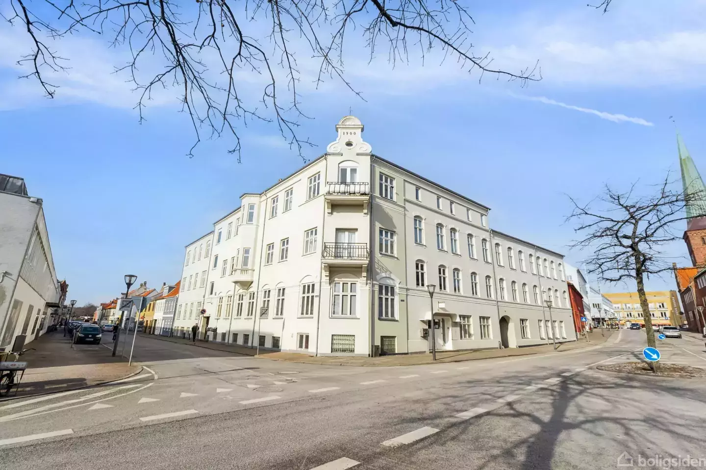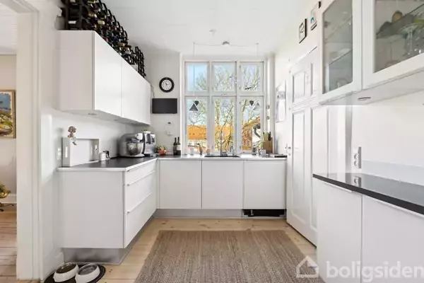 Charmerende herskabslejlighed med tagterrasse Midt i det gamle, historiske Nyborg, hvor gågaden, Volden og havnen alt sammen er lige uden for døren, toner denne lejlighed frem. Boligen er placeret i et flot bygningsværk fra 1900, og I skal op på anden sal for at træde ind i lejligheden, der emmer af charme og sjæl og har udsigt til vandet. Glæd jer blandt andet til en sydvestvendt tagterrasse, to stuer en suite og tre værelser.Klassiske trægulve, støbejernsradiatorer, fyldningsdøre og dørkarme m