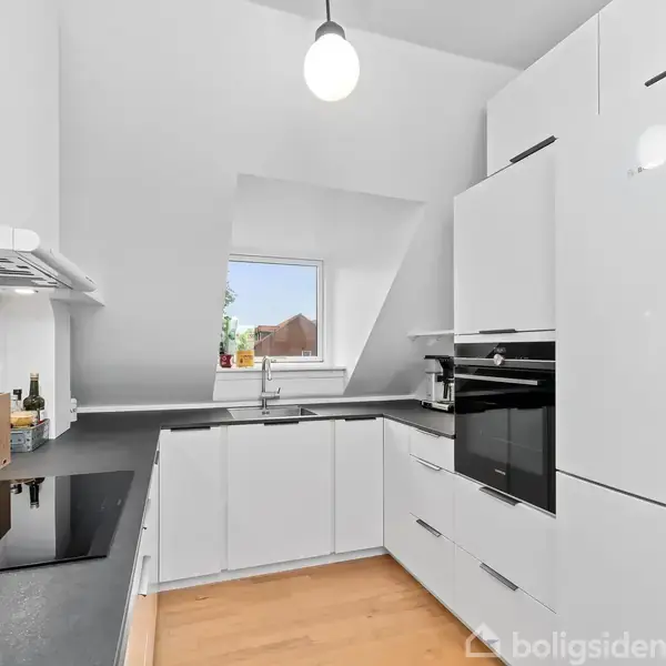 Velkommen til denne skønne og indbydende lejlighed, hvor planløsningen er både funktionel og veludnyttet.Du træder ind i den hyggelige entré, som giver adgang til alle boligens rum og har fin, lille garderobeplads.Stuen vender mod det grønne område bag ejendommen og byder på fri panoramaudsigt over Aarhus og bugten. Stuen er rummelig, og her er der både plads til spisebord og sofaafdeling.Fra stuen er der udgang til altanen, hvor både morgen- og eftermiddagssolen kan nydes.Køkkenet er et Kvik-kø