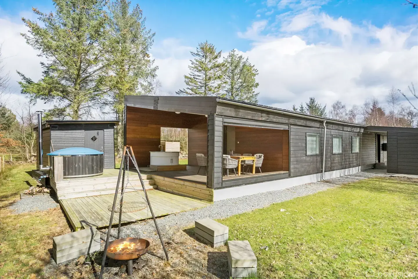 Åbent hus med tilmeldingskrav 3/2 - klik på billede - FANTASTISK FUNKIS-FRISTED - energivenligt sommerhus med jordvarme Energivenligt sommerhus, hvor I med god samvittighed kan tage en pause fra hverdagen. Nyd den nærliggende Trekantsskov, hvor der er både hundskov og MTB ruter. Nyd vandet ved Bisnap, som er skønt og børnevenligt. Nyd saunaen og vildmarksbadet der ligger som en naturlig forlængelse af terrassen. Nyd hinanden i dette sommerhus, hvor man kan samle hele familien – og have god plads både inde og ude. Der er cykelafstand til Hals, hvor man drysser langsomt rundt og nyder livet i de små hyggelige gader, en middag på havnen og de hyggelige oplevelser, som de små kystbyer er fyldt med. Huset ligger i et hyggeligt Sommerhusområde, med små blinde stikveje - og her har man fred og ro fra de fleste, så man selv kan gå ud og ind af oplevelserne. Kvadratmeterne fordeler sig på en indbydende entré med adgang til bryggers, som har vaskemaskine og jordvarmeinstallation. Der er stort køkken/alrum og stue i åben forbindelse. Der er lavet fine ovenlysvinduer, der giver et godt lys. De 4 værelser er alle i en god størrelse, så der er plads til hele familien. De to badeværelser – det ene med infrarød sauna – giver god mulighed for at to familier kan bruge huset. Jordvarmeanlægget giver billig og behagelig gulvvarme året rundt og de store overdækkede terrasser sørger for hyggeligt udemiljø både når solen står op og når den går ned. Saunaen og vildmarkskarret indbyder til hygge året rundt – og i de sene timer. Huset er perfekt til udlejning, men er ikke tilknyttet noget bureau på nuværende tidspunkt – så det kan købes udelukkende til dit eget brug. Det er en meget nem grund og carporten gør hverdagen nem, når man holder i overdækningen lige udenfor døren.