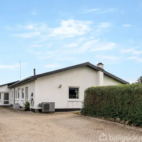 Velkommen til et smukt moderniseret hjem i hjertet af Stigs Bjergby, hvor æstetik og funktionalitet skaber de ideelle rammer om et nyt kapitel. Allerede ved ankomsten opleves boligens indbydende atmosfære, hvor de lyse facader og velplejede omgivelser danner et harmonisk førstehåndsindtryk. Indkørslen byder på god plads til flere biler, og grønne hække indrammer grunden, så du får en privat oase midt i fredelige omgivelser. Indenfor venter en gennemtænkt planløsning, hvor moderne komfort går h