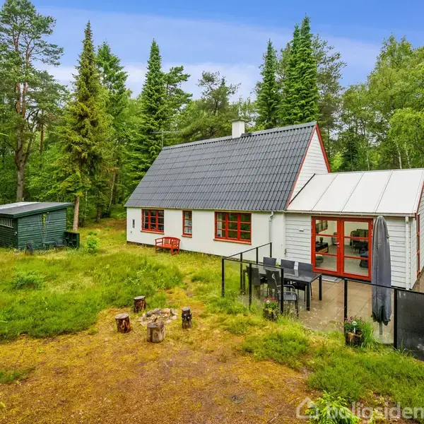 Velholdt sommerhus beliggende på en smuk skovgrund med høje flotte fyrtræer, lyng og egetræer - man får virkelig følelsen af den skønne Læsø-natur på denne dejlige plet. Grunden er på 5.340 m2 og beliggende i stille og rolige omgivelser i udkanten af Præstens Skov, og er beliggende i cykelafstand til den dejlige badesø samt den nye hundeskov, og til Storedal med skøn badestrand og klitområder, samt Byrum med indkøb, biograf, restauranter, Storhaven mv. På grunden er der masser af hyggelige kroge