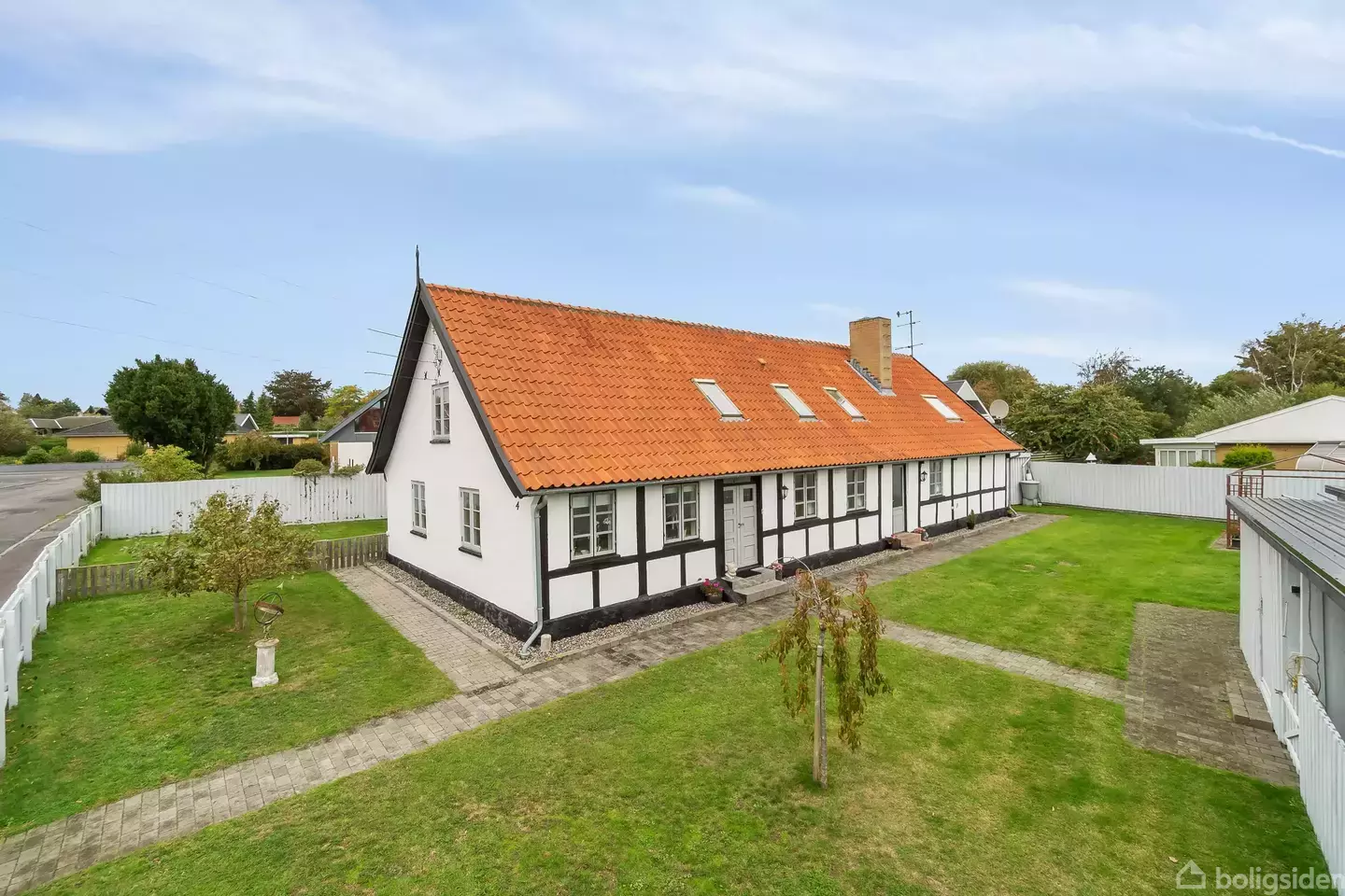 Charmerende bindingsværkshus i Nexø Tæt på hverdagens behov i Nexø står dette nydelige bindingsværkshus klar til overtagelse. I stuen ser I fritlagte bjælker, der sammen med to brændeovne skaber en hyggelig atmosfære i rummet. Stuen er todelt med niveauforskel, så I får en naturlig opdeling til spisesektion og et langbord samt en dagligstue til sofamøblerne. Svane-køkkenet fremstår i et tidløst udtryk med hvide fronter, en induktionskogeplade og en ovn i ergonomisk højde. I stueplan finder I to