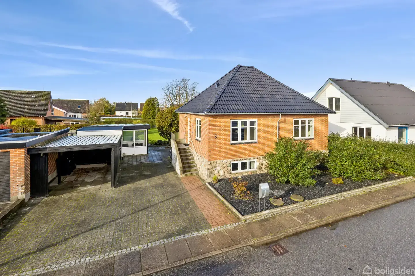 På den hyggelige adresse Vibevej 3 i Nørager finder du denne indflytningsklare rødstensvilla – et skønt hjem, hvor både hverdag og fritid får de bedste rammer. Her får du en velholdt bolig, hvor taget er udskiftet i 2023, og som har gode udendørsarealer med en skøn have, flisebelagt indkørsel og en carport, hvor bilen står tørt og godt samt et praktisk udhus med plads til opbevaring.Allerede ved ankomsten fornemmer du den indbydende atmosfære. Den overkommelige forhave er nydeligt anlagt, og bag