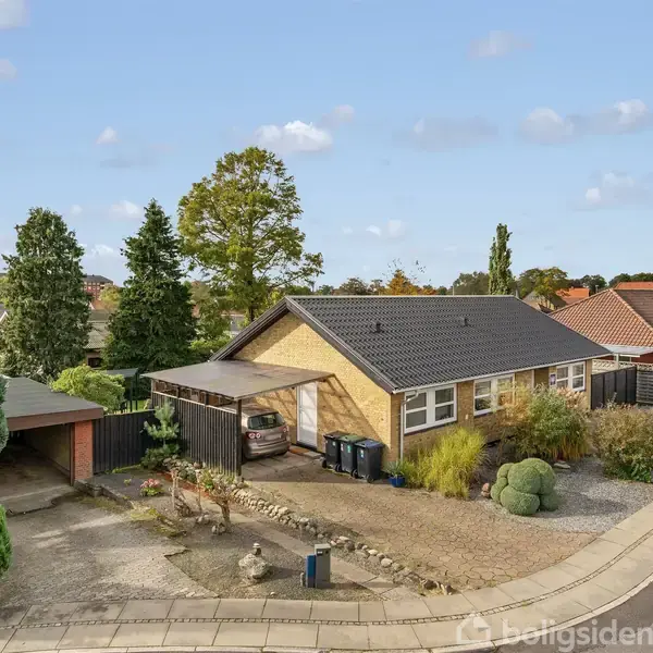 Åbent hus med tilmeldingskrav 17/2 - klik på billede - På rolige Vibevej i Varde finder I denne indbydende etplansvilla, som kombinerer klassisk 60'er-arkitektur med moderne komfort. Her får I en lys og venlig bolig, der er løbende opdateret og fremstår både funktionel og fuld af atmosfære. Huset er opført i 60'erne med klassiske gule murstensfacader, og siden da er det løbende moderniseret og opgraderet med bl.a. udskiftning af tag og vinduer. Indenfor bydes I velkommen i en lys og dejlig bolig med listelofter, nydelige gulve og et flot køkken med hvidt interiør. Badeværelserne med retrolook forener nostalgi og moderne komfort på fineste vis. Køkkenet er holdt separat, men har en smart køkkenø med spiseplads, så her kan børn eller gæster følge med, når dagens kok jonglerer med potter og pander. Dernæst kan måltidet nydes i boligens stue, som er et stort rum med lysindfald fra tre sider og masser af plads til at indrette forskellige zoner. Derudover byder boligen på tre gode værelser samt et badeværelse og et gæstetoilet - og endelig er der et disponibelt rum i kælderplan, der giver jer noget ekstra plads til opbevaring. Udenfor venter en hyggelig, opvokset have med god plads til udelivet i sommermånederne. I haven er der lagt flis i alle bedene, så de er nemme at holde og altid ser flot ud. Træterrassen ved huset vender stik syd, og den er der udgang til fra både stuen og forældresoveværelset, hvilket gør den til en velintegreret del af boligen, og derudover er der en overdækket terrasse længere nede i haven. Ud mod vejen er der en flisebelagt indkørsel, der ender i en carport samt en rigtig flot, japanskinspireret forhave med formklippede buske. Ejendommen ligger i et veletableret villakvarter som et af de sidste huse på Vibevej. Vejen ender ved en vendeplads, så børnene kan sagtens selv besøge kammerater i kvarteret og løbe på rulleskøjter på vejen, der ikke har gennemkørende trafik. Fra adressen er der kort afstand til midtbyen, Campus og flere indkøbsmuligheder ligesom Frelloskolen ligger inden for en behagelig cykelafstand på et par kilometer. Alt i alt får I en velholdt villa med skønne uderum og en fredelig beliggenhed tæt på både by, skole og natur. Et oplagt valg for familien, der ønsker et hjem med karakter, lys og en rolig beliggenhed i Varde.