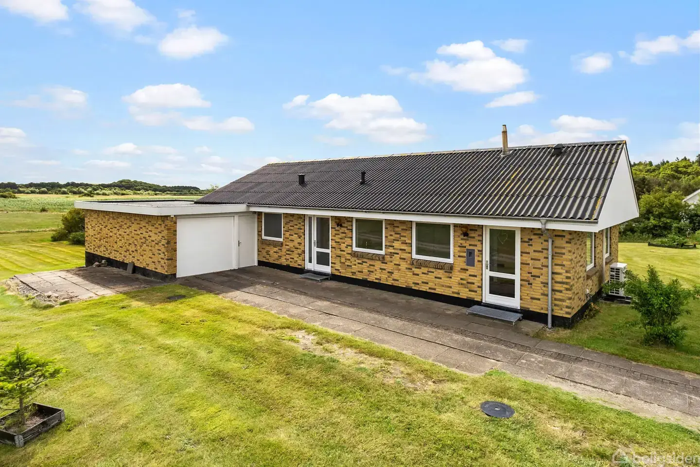 Åbent hus med tilmeldingskrav 3/2 - klik på billede - Villa med god plads, værksted og fiskeret ved Trend Å Velkommen til Viborgvej 613 – en charmerende étplansvilla i klassiske gule mursten, beliggende i naturskønne omgivelser med udsigt til åbne marker og egen jord ned til Trend Å, hvor du har fiskeret. Når du træder ind i boligen, bliver du mødt af et rummeligt bryggers med vaskefaciliteter og god plads til hverdagens praktiske gøremål. Herfra går du videre ind i det lyse og velholdte køkken, hvor der er plads til spisebordet og familien omkring måltiderne. Køkkenet ligger i åben forbindelse til en stor og indbydende vinkelstue, der med sine store vinduespartier sikrer et skønt lysindfald og udsigt til haven. Fra stuen er der direkte adgang til en af de dejlige terrasser, hvor udelivet rigtig kan nydes. Villaens værelsesafdeling byder på tre gode værelser, alle med god skabsplads. Badeværelset fremstår rummeligt og funktionelt med både bruseniche og badekar – her er plads til afslapning og hverdagsluksus. Ud over selve boligen får du en solid udbygning med plads til værksted, hobbyrum, opbevaring eller måske lidt dyrehold. Dertil kommer en garage med eget værksted. Grunden er på hele 1,1 hektar, hvilket giver dig masser af luft, frihed og muligheder – og den smukke natur omkring Trend Å som nærmeste nabo. - Boligen opvarmes effektivt med luft-til-vand varmepumpe, hvilket sikrer en økonomisk og miljøvenlig varmeløsning. Viborgvej 613 byder på en naturskøn beliggenhed tæt på både skov og Limfjorden. Den dejlige badestrand er populær til windsurfing og tiltrækker både lokale og turister. I kort afstand ligger Rønbjerg Feriecenter med aktiviteter for hele familien. Så her får du altså en ejendom med masser af plads – både ude og inde – i rolige og naturskønne omgivelser. Perfekt til dig, der drømmer om at kombinere landlig idyl med praktiske rammer og god komfort.