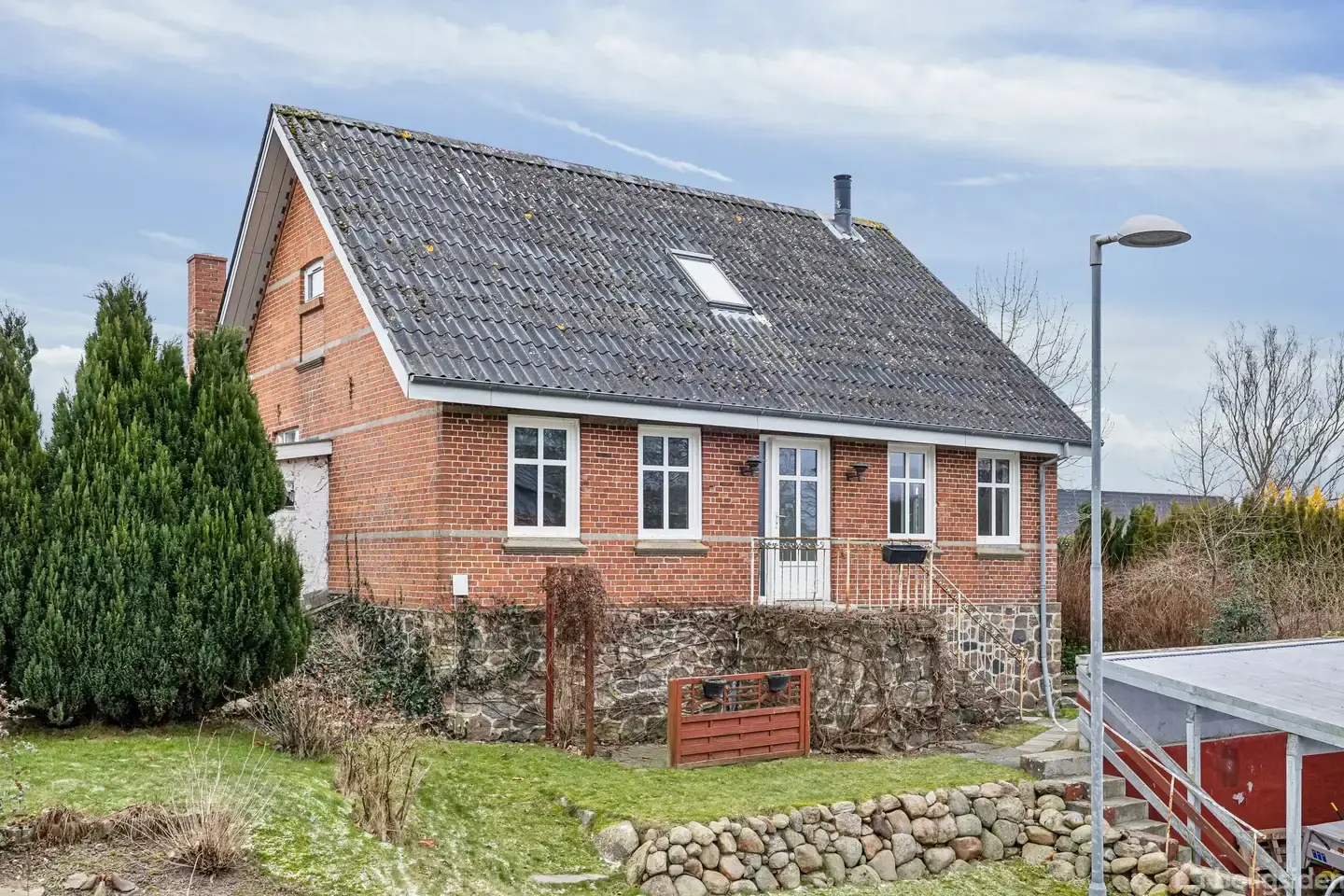 Velkommen til denne hyggelige villa beliggende i Nørre Vissing på Vidkærvej 14 – en stemningsfuld villa fra 1913, hvor klassisk arkitektur og naturskøn beliggenhed går op i en højere enhed. Huset præsenterer sig smukt med rødstensfacade, hvidesprossevinduer og en synlig stensokkel mod vest, som skaber et karakterfuldt udtryk. Forhavens stensætninger og carporten fuldender det hyggelige udtryk. Indenfor venter et hjem med atmosfære. To stuer en suite skaber et lyst og sammenhængende opholdsrum,