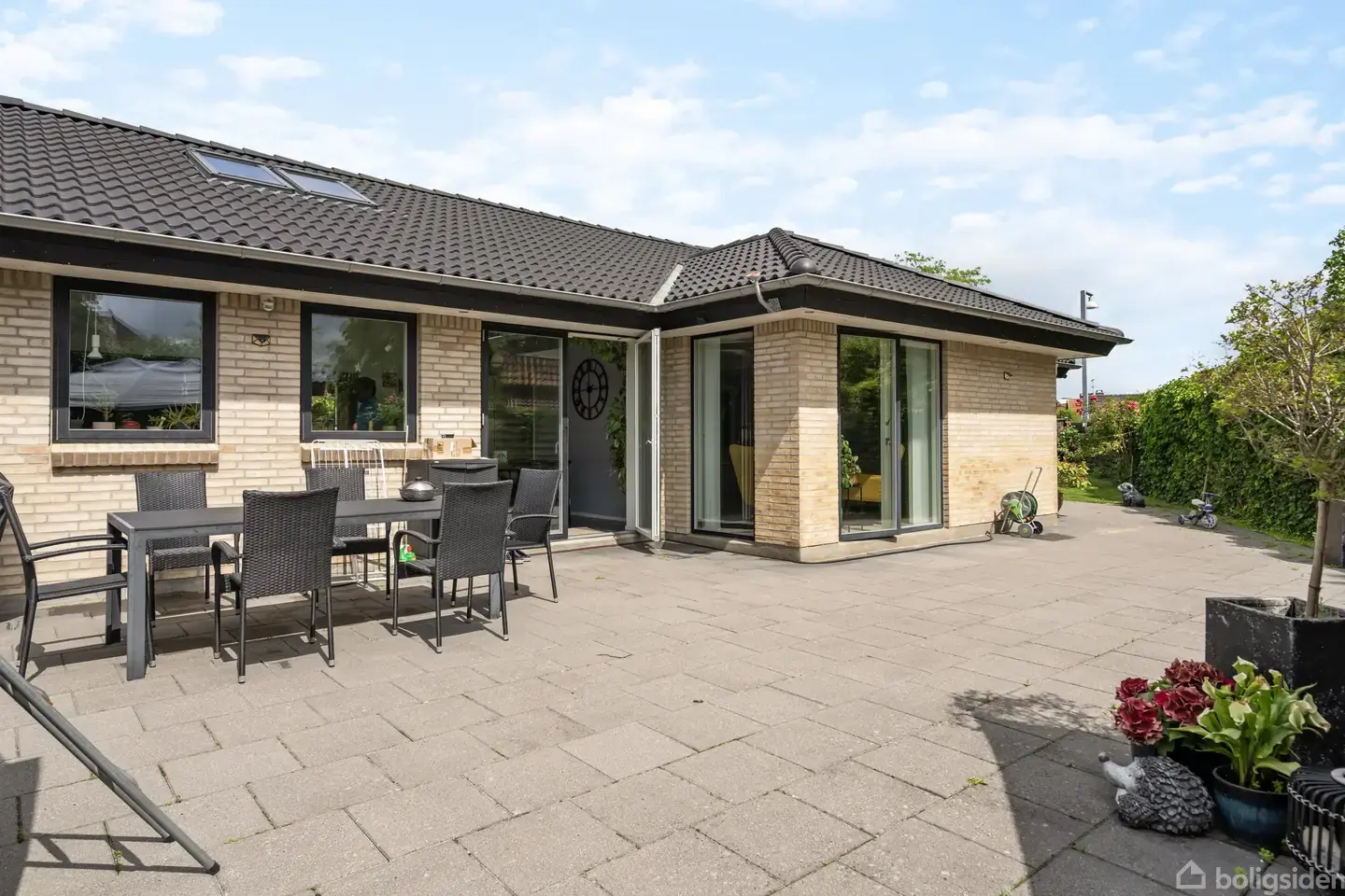 Velkommen til ejendommens adresse – Viemosebro 1, hvor denne moderne etplansvilla fra 2017 kombinerer funktionalitet, æstetik og energirigtig kvalitet. Huset er opført med fokus på en gennemtænkt planløsning, der tilgodeser både familieliv og praktisk hverdag. Med energimærke A2015 får du en bolig med lavt energiforbrug og et behageligt indeklima året rundt. De 170 m² bolig er fordelt på særskilt børne- og forældreafdeling, store opholdsrum og direkte adgang til terrasse og have. Ejendommen ligg