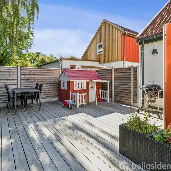 På en både stille og central beliggenhed finder I et rækkehus, der nu kan blive jeres, og som vil give jer attraktive rammer om de næste mange års familieliv både med og uden børn. Huset er nemlig rummeligt, lyst og rart, mens haven ligeledes bidrager til herlighedsværdi i hverdagen. I får hjemme i et børnevenligt område, hvor otte ens rækkehuse flankerer en lukket, lille matrikel uden biler. Der kan imidlertid parkeres fortil mod den rolige vej, hvor der til huset findes privat p-plads. En fæll
