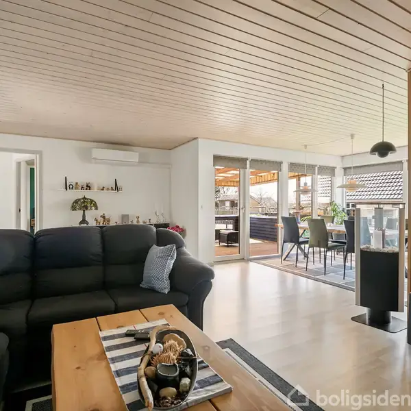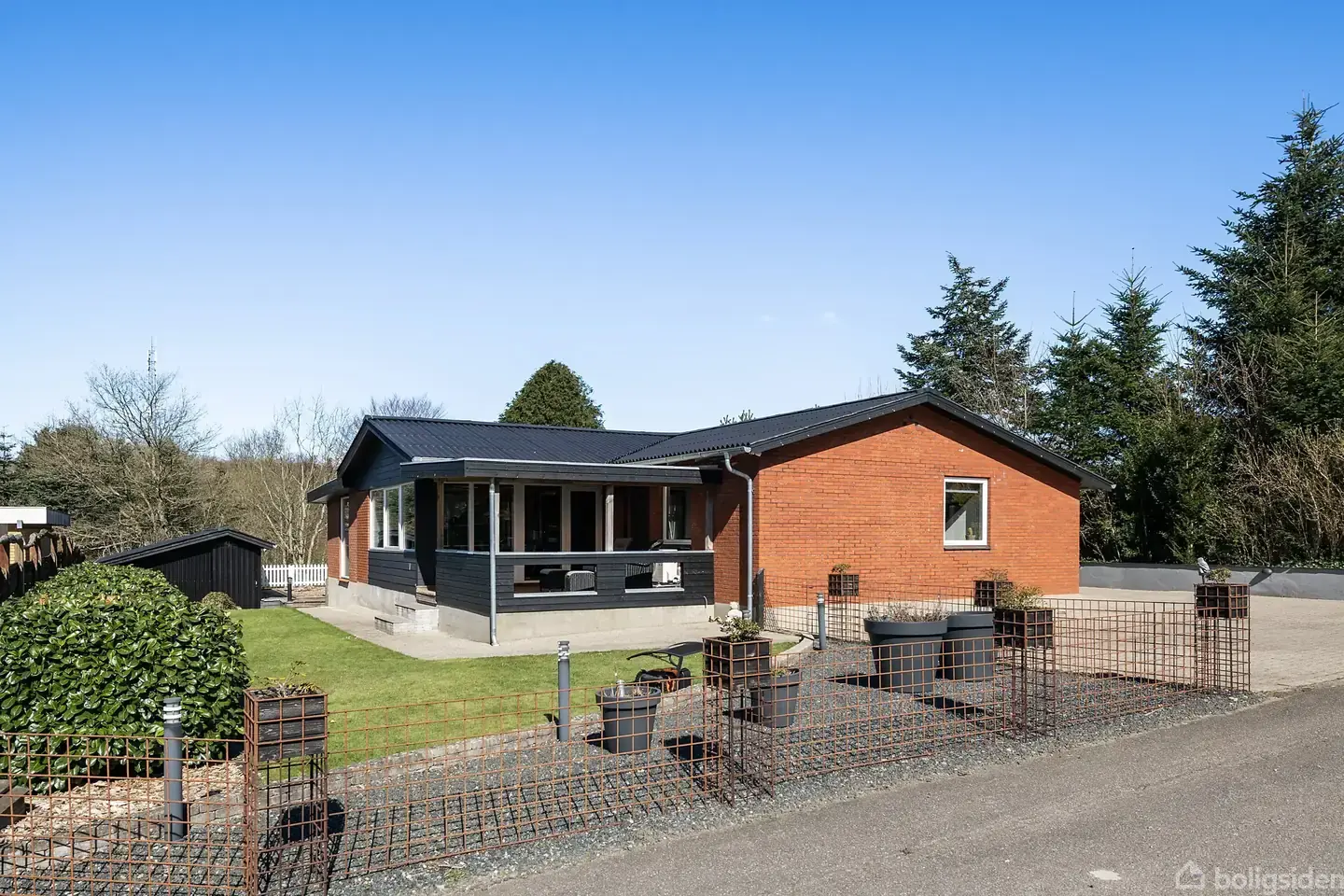 Glæd jer til at se denne store, velholdte etplansvilla, som ligger trygt og godt i det centrale Give. Der er tale om en indflytningsklar ejendom med integreret garage og værksted, ligesom I kan nyde udelivet på skønne terrasser i haven. I løbet af 2021-2023 har ejendommen fået nyt tag samt tagrender og udhæng, badeværelset er blevet moderniseret, og alle rum er blevet malet på ny. To sammenhængende stuer udgør boligens opholdsrum, hvor sollyset strømmer ind fra flere sider og bidrager til den be