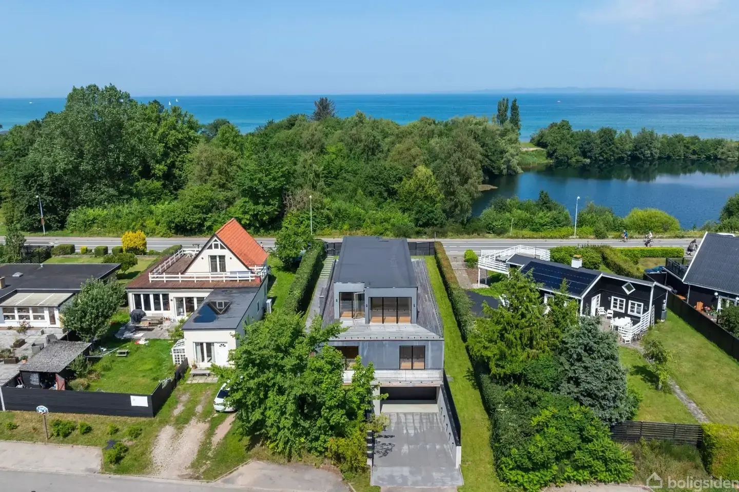 Helårshus - oplagt til liberalt erhverv. Der er stranden i Hornbæk, og så er der stranden i nabobyen Dronningmølle, som strandaficionados er enige om, er den bedste strand på Nordkysten. Hvid og sandfyldt er den, bred og lang er den, og så er den en strand med sandbanker, bølgende riller i sandbunden og børnevenlig dybde langt ud. Det er stadig Øresund, for vandet bliver først til Kattegat efter fyret i Nakkehoved. Lige over for søen og ned til Dronningmølle Strand står et spritnyt hus bygget på et fundament fra 1962. Ingen har endnu brygget kaffe i køkkenet, ingen har endnu stået under bruseren, taget en morfar på terrassen, kørt sin bil ned under huset eller set en solnedgang fra stuen. Kom an, siger huset, med alle 342 m2 bolig og 168 m2 kælder er her masser af plads til mine, dine og vores børn. I et hus på den størrelse er der også mulighed for liberalt erhverv. Det er bygget i et kvarter fra den tid, da Dronningmølle var domineret af lergrave som søen overfor, teglværk og boliger til fabrikkens arbejdere. Grunden er på 681 m2 med en have, hvor græsset bare skal slås. Solnedgange, de opleves bedst i vandkanten. Fra huset er der bare 100 meter til stranden, og den slags beliggenheder kommer er der ikke mange i Dronningmølle. Byen er ikke en større by. Det er Hornbæk derimod, som ligger 10-12 cykelminutter ad Nordkyststien, som går langs kysten hele vejen til havnen. Til forskel fra så mange andre sommerbyer, er Hornbæk også fuld af liv om vinteren.