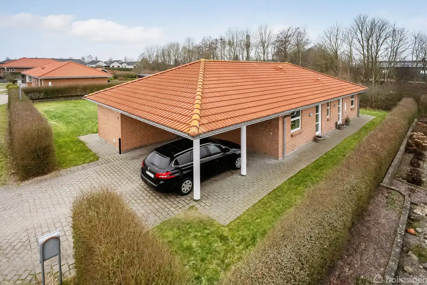 Åbent hus med tilmeldingskrav 3/2 - klik på billede - På blind stikvej i lukket villakvarter, er denne indbydende bolig særdeles velbeliggende. I det trygge kvarter, findes indtil flere legepladser og skole ligesom at daginstitutioner ligger indenfor kort gåafstand. Naturen kan nydes i Fægteborg Plantage, der ligeledes ligger i den umiddelbare nærhed. Ude som inde, bærer boligen præg af løbende vedligehold og forbedringer. Der er adgang via lys og indbydende og praktiske bryggers, der leder direkte ind i boligens midtpunkt – det skønne køkkenalrum. Her strømmer lyset ind fra alrummets karnap, der samtidig giver et frit kig ud i den lukkede have. Fra den skønne stue, er der direkte udgang til syd/vestvendt træterrasse. Boligen rummer udover soveværelset, to gode børneværelser, et kontor samt et disponibelt rum i fuld boligkvalitet. Den gennemtænkte planløsning, skaber en børneafdeling og en forældreafdeling, adskilt af boligens opholdsrum. Fra soveværelset er der få skridt til boligens badeværelse. Den nemme og velanlagte have, byder på særdeles gode muligheder for udeophold og aktiviteter. Huset er placeret, så haven primært er orienteret imod middags- og aftensol. Udover carport til bilen, findes stort redskabsrum/ værksted. Løgstrup er en aktiv og tryg by, med gode fællesskaber for alle aldersgrupper. Byen har alt at tilbyde til børnefamilier, f.eks. dagplejere, Løgstrup Børnehus (integreret vuggestue og børnehave), folkeskole fra 0. - 9. klasse, SFO, fritidsklub og ungdomsklub. Fritiden kan tilbringes i Løgstrup Multipark hvor alle aldersgrupper kan ”lege”, eller ved Løgstrup Hallen der er samlingspunkt for byens sportsaktiviteter. Det skønne miljø omkring Hjarbæk by og fjord, nås indenfor kort afstand. Kom og oplev en indflytningsklar villa, der matcher alle aldersgrupper!