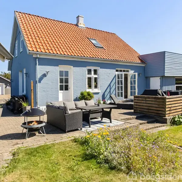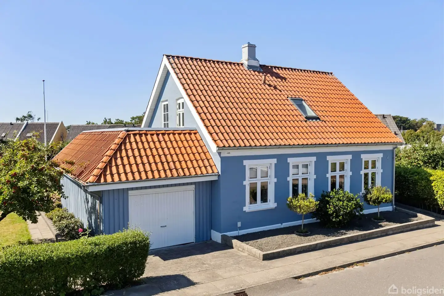 Velkommen til Vindblæsvej 4. En charmerende blåkalket villa i to plan med en skøn altan og udsigt over Limfjorden. Villaen er fra 1915 og står flot og vedligeholdt på en dejlig grund på 756 m2, hvoraf boligen rummer 140 veludnyttede m2. Villaens stueetage begynder i det rummelige bryggers, hvorfra der er indgang til boligens fællesarealer, som står med flotte, massive trægulve og franske døre mellem de to store stuer, som ligger i forbindelse med det store køkken alrum. De franske døre kan med fordel åbnes og skabe én stor stue til festlige lejligheder. Hertil findes der et fint gæstetoilet. Villaens 1. sal byder på tre gode værelser med god opbevaring i repos og et stort badeværelse med dobbeltbruser. Der er loft til kip og synlige bjælker, og fra et af værelserne er der udgang til den flotte altan, hvor man kan nyde sommeraftener med familien.