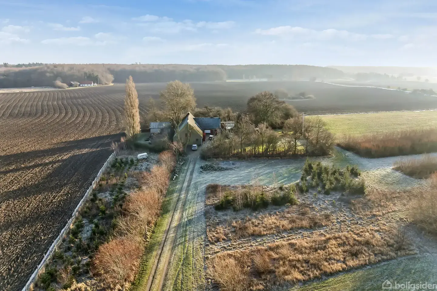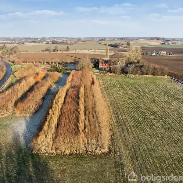 Naturskønt beliggende landejendom på Vestmøn – tæt på skov og Østersø På det smukke og naturskønne Vestmøn, tæt ved Fanefjord Skov og Østersøens kyst, ligger denne charmerende landejendom ugeneret og fredeligt med et imponerende grundareal på hele 26.321 m². Her får du ro, udsigt og masser af plads – både inde og ude. Grunden er anlagt med græsmark, smukke piletræer og åbne vidder, der giver en skøn udsigt over det omkringliggende landskab. De mange kvadratmeter åbner for et væld af muligheder, herunder etablering af selvforsynende have, mindre dyrehold eller blot masser af plads til natur og fritid. Ejendommen består af et solidt stuehus opført i røde mursten med termovinduer og klassisk tegltag. Opvarmning sker via oliefyr. Stuehuset byder på en indbydende entré med trappe til 1. sal. Køkkenet har forbindelse til spisestuen, hvorfra der er udsigt over landskabet og direkte adgang til en hyggelig havestue, der forlænger sæsonen i både forår og efterår. Fra køkkenet er der adgang til gangareal og badeværelse med bruseniche og gulvvarme. Derudover rummer stueplan en rummelig opholdsstue med brændeovn samt et soveværelse. På førstesalen finder du en møblerbar repos, to værelser samt et stort og stemningsfuldt soveværelse med trægulve. Haven omkring stuehuset byder på frugttræer og et grønt, naturligt udtryk. Sammen med det store grundareal giver dette ideelle rammer for et liv tæt på naturen. Den vinkelbyggede staldlænge er gedigen og yderst anvendelig. Her er i dag indrettet værksted, stald, disponible rum, garage samt uudnyttet loft, hvilket giver mange anvendelsesmuligheder – hobby, erhverv eller dyrehold. Dertil kommer ældre udhuse, hønsehuse samt en maskinlade med plads til den lille traktor. Mellem stuehuset og staldlængen findes et hyggeligt og afskærmet gårdmiljø, som indbyder til udeliv og samvær. Ejendommen ligger fredeligt og naturskønt med gode muligheder for, at en kommende ejer kan sætte sit helt eget præg – både på indretning, udnyttelse og de smukke omgivelser. RealMæglerne Ryberg & Thorsbro fremviser alle ugens dage. Kontakt os på telefon 72170772 for en aftale om fremvisning.