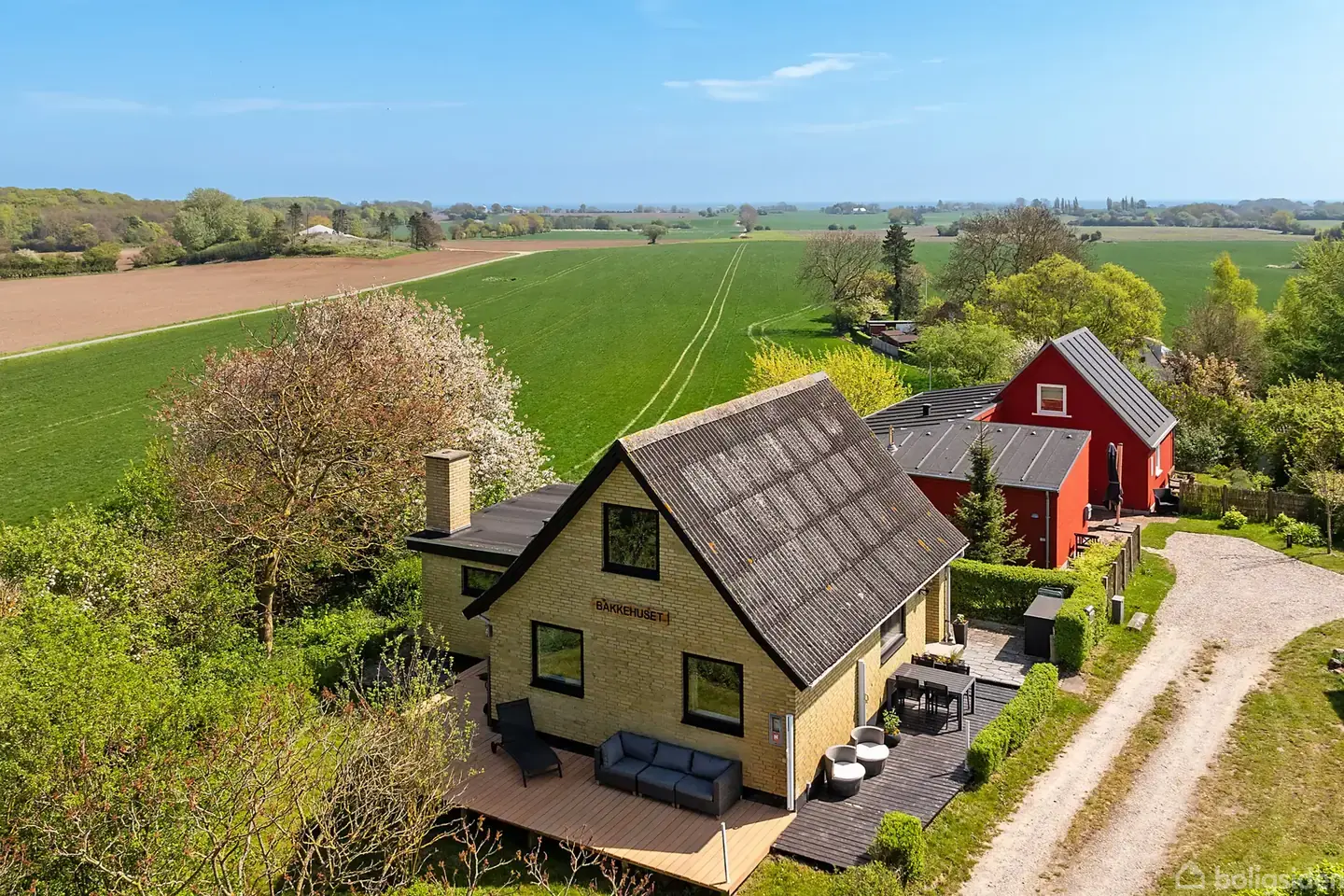Jeres næste fristed ligger på en af Langelands karakteristiske hatbakker – formet af istidens bevægelser og i dag med udsigt over det kuperede landskab. Fra toppen af villaen kan I nyde netop dette særlige syn. “Bakkehuset” på Vindebyvej 31 ligger for enden af en hyggelig, lukket vej, hvor naturens bakkede silhuet omkranser jer fra alle sider. Uanset hvor I befinder jer på grunden, har I udsigt til det grønne – og mod horisonten anes endda havet. Grunden tæller 1.182 m² med plæne, lægivende bep