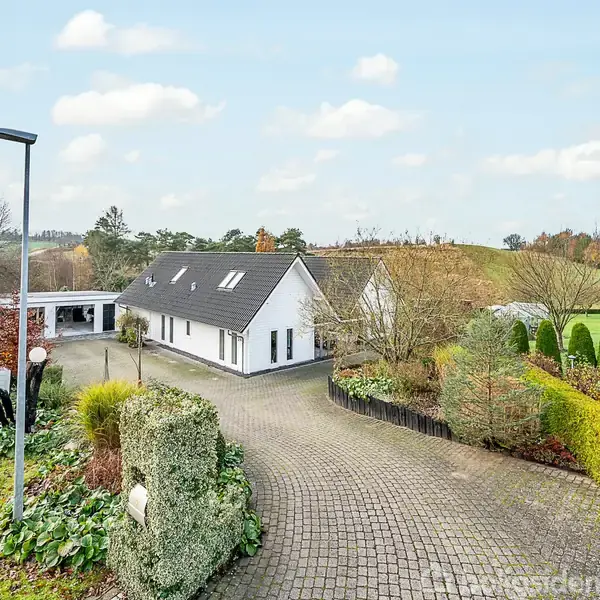 På Vindumvej 24 finder du et sjældent udbudt Skovbo Bjælkehus, opført i 2004 i Nordskandinavisk kernetræ og placeret på en naturskøn grund på hele 3.591 m². Her får du 279 m² bolig, hvor kvalitet, varme og gedigent håndværk går hånd i hånd. Ejendommen ligger fredeligt i Bjerring – omgivet af naturens ro og alligevel tæt på Bjerringbros faciliteter.Indenfor mødes du af en indbydende entré og et lækkert badeværelse/bryggers renoveret i 2022. Videre ligger det store køkken-alrum, hvor det nye køkke