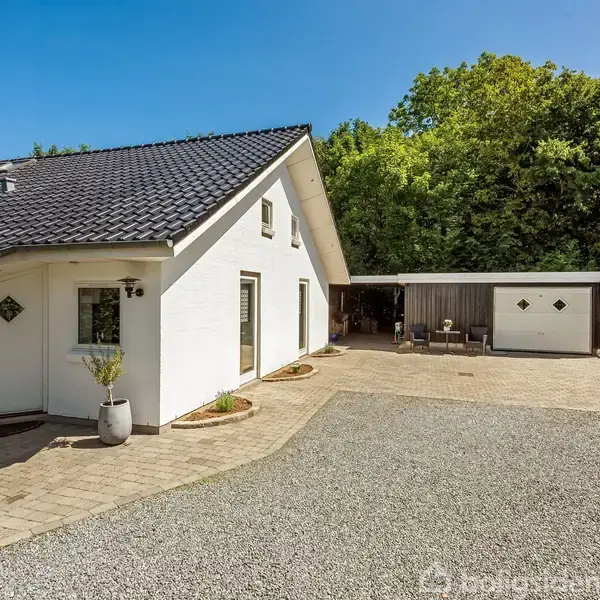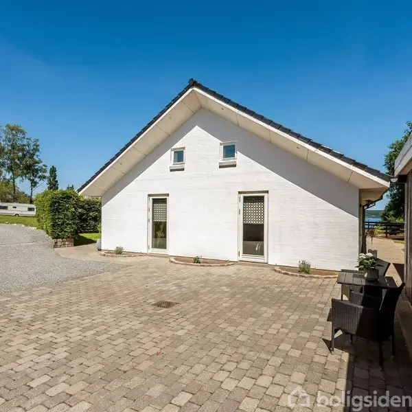Villaen ligger for enden af den privatejet stikvej i et børnevenligt kvarter. Fra matriklen er der langt til naboerne, så I kommer til at bo helt privat og uden indkig - særligt da baghaven ubemærket glider over i naboernes skovareal, der stort set ikke bruges. Desuden nås Aabenraa Fjord hurtigt til fods - i huskøbet er der tilmed klausuleret uhindret adgang til fjorden fra matriklen. Og når det ikke er vandet, men skoven I vil besøge, ligger den smukke Hostrupskov med stier ligeledes i gåafstand fra adressen. Det samme gør sig gældende for de øvrige bekvemmeligheder, der binder hverdagen sammen, herunder den nærmeste skole som er placeret i Stubbæk bare en 10 minutters cykelturen fra hjemmet, mens der er gode pasningsmuligheder i Aabenraa. Her klares dagligvareindkøb også nemt, præcis som nærmiljøet har et godt udbud af idrætsfaciliteter. Trods alle de fortræffeligheder, er den pragtfulde panoramaudsigt ud over fjorden og det maritime liv nok alligevel det, der trækker villaen op i den ypperste boligklasse. Heldigvis er der også klausul på udsigten, som skal bevares trods bebyggelse på nabomarken mm.Ejendommen, der kun har haft en ejer, lever fuldstændigt op til den attraktive beliggenhed, idet villaen fremstår flot og æstetisk med generøse lysindfald, en god rummelighed og masser af plads til familieliv og gæster. Inde venter køkkenalrum og stue i et åbent rum med et markant glasparti, der peger direkte mod fjorden og sikrer jer en pragtfuld udsigt over vandet. Her er også brændeovn og plads til spiseafdeling og et hyggeligt sofaafsnit, ligesom I får en brugbar hems/stue under ovenlysvinduerne - ligeledes med udsigt til vandet. I får også et rummelig forældreafsnit med soveværelse med skabsvæg og dobbeltdøre til haven samt eget badeværelse med hjørnebadekar og bruseniche. Hjemmet rummer også to gode børneværelser med hver sin hems og udgang til haven samt endnu et bad med brus, som ungerne kan deles om. Ude byder haven på hyggestunder og frit kig til vandet fra den 80 kvm store træterrasse, der tilsammen med fliseterrasserne strækker sig mod samtlige verdenshjørner og sikrer, at det altid er muligt at finde en plads i solen eller skyggen. Desuden er der plæne mod øst og vest samt under træterrassen, hvor der også er anden beplantning samt en anelse "Vild med vilje", som sikrer et rigt dyreliv. Her ville et orangeri passe rigtig godt ind. Dertil garage og carport i forlængelse heraf med mulighed for udvidelse samt god plads til gæsteparkering.