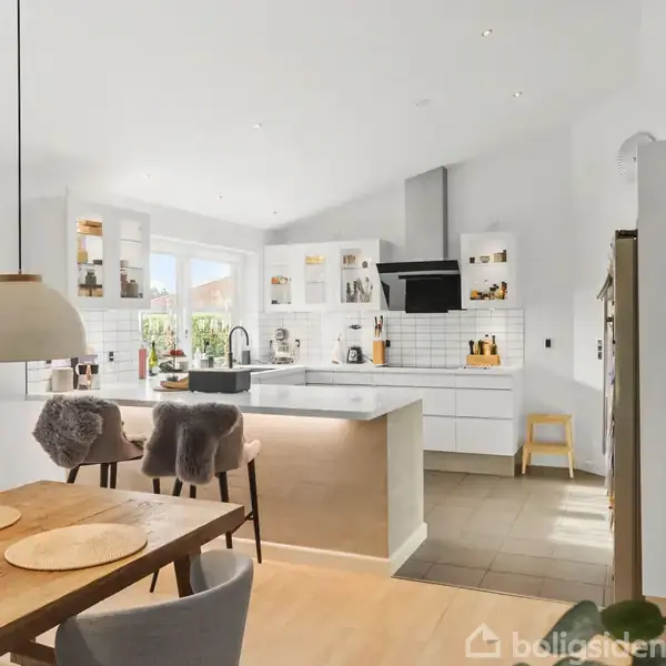 Velkommen til Violvænget 5 i attraktive Nordbyen i Nykøbing Falster – en moderne og indflytningsklar villa, der kombinerer gennemtænkt planløsning, høj komfort og et trygt nærmiljø. Ejendommen er opført i 2006 og byder på hele 198 m² bolig med plads til hele familien. Her får du fem soveværelser, hvoraf to fungerer som masterafdelinger med eget badeværelse og walk-in. I alt tre flotte badeværelser, så morgenrutinerne glider let for både børn og voksne. Husets hjerte er det store, lyse vinkelkøkkenalrum med et stilrent AUBO-køkken fra 2020 – udstyret med moderne detaljer som køkkenarmatur med kogende vand. Herfra er der direkte adgang til en skøn, overdækket fliseterrasse, hvor de lune sommeraftener kan nydes i fulde drag. Villaen har gulvvarme i hele huset, et praktisk og opvarmet bryggers/teknikrum med adgang til carport samt masser af opbevaringsplads. Den store, charmerende have indbyder til både leg, samvær og afslapning – perfekt for børnefamilien, der ønsker et trygt og roligt sted at slå rødder. Her kan børnene frit lege på vejen omgivet af grønne ligusterhække og et lokalmiljø med et stærkt sammenhold. Nordbyen er et populært og familievenligt område med gode stisystemer, der fører sikkert til både skole, børnehave og grønne områder. Her får du et hjem, hvor det moderne familieliv trives – tæt på naturen, byen og hverdagslivets bekvemmeligheder. En villa lidt ud over det sædvanlige, perfekt til den kræsne familie, der ønsker kvalitet og plads i smukke omgivelser.