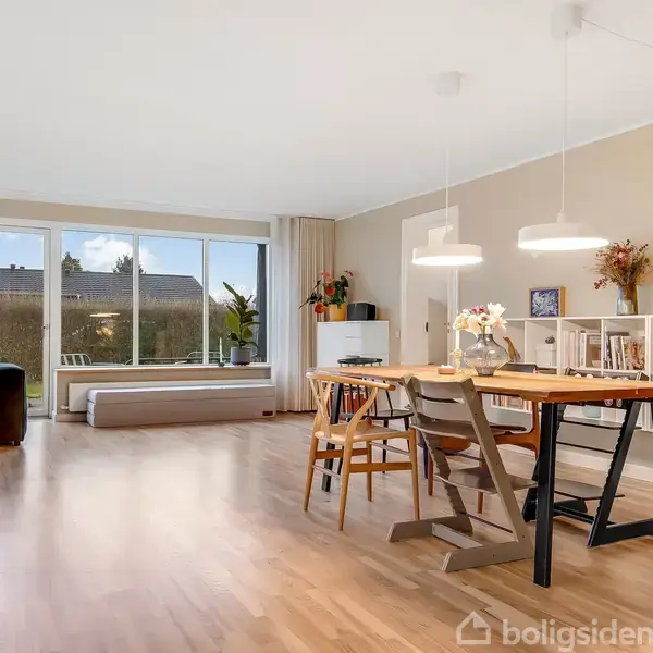 Velkommen til Violvej 36, hvor I nu kan træde inden døre i en indbydende, rummelig og charmerende 60’er villa, hvor dagslyset strømmer ind af store vinduespartier, der bidrager til den hyggelige atmosfære hjemmet byder på. Huset, der oprindeligt er opført i 1962 og siden til-/ombygget i 1974, giver jer som en ekstra bonus i kvarteret hele 155 kvm i ét plan at indrette jer på – i en planløsning, der passer den moderne families indretningsbehov. Trægulvene er nyslebne for 1 ½ år siden – hvor den s