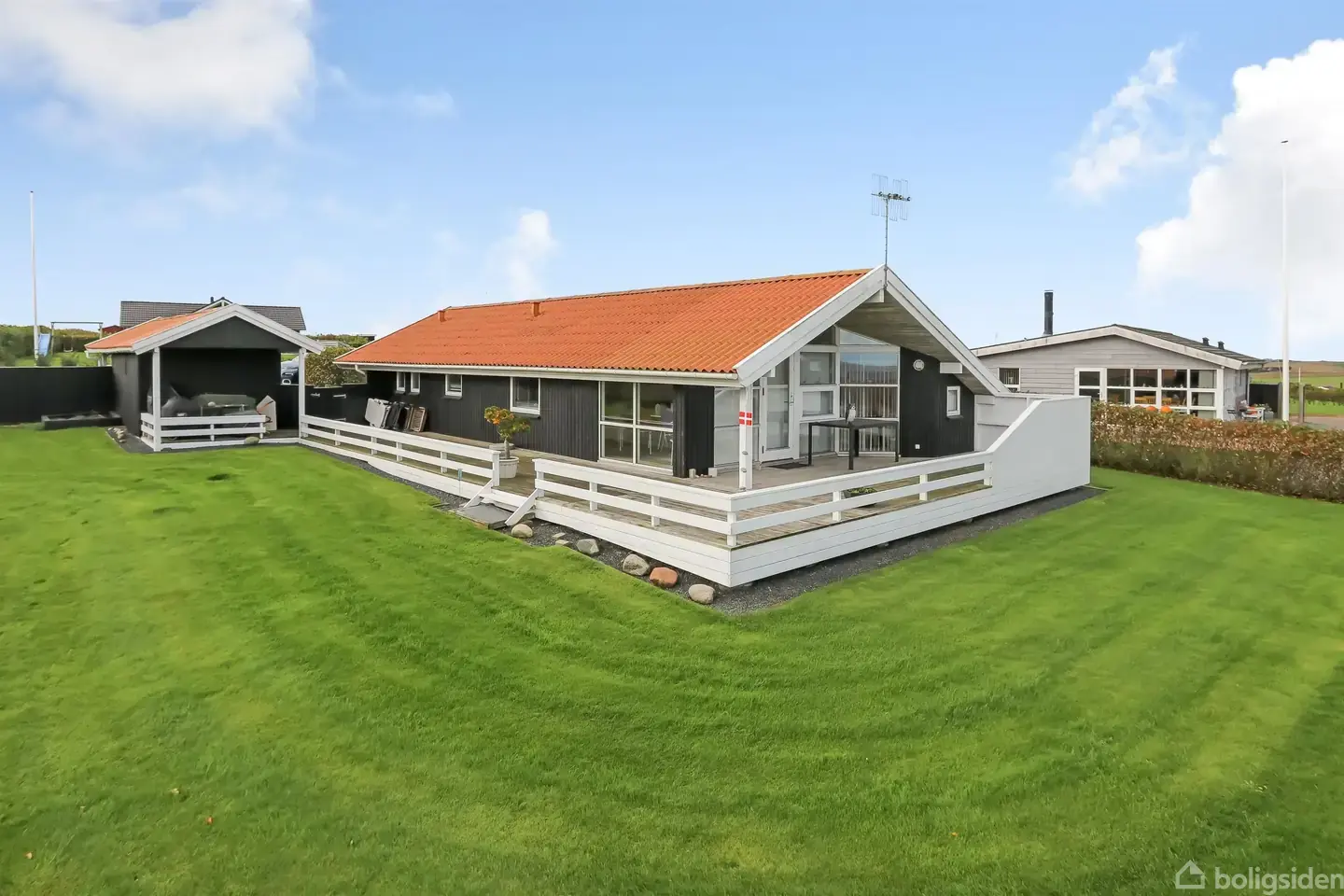 Velholdt og indbydende sommerhus med udsigt, plads og store terrassemiljøer