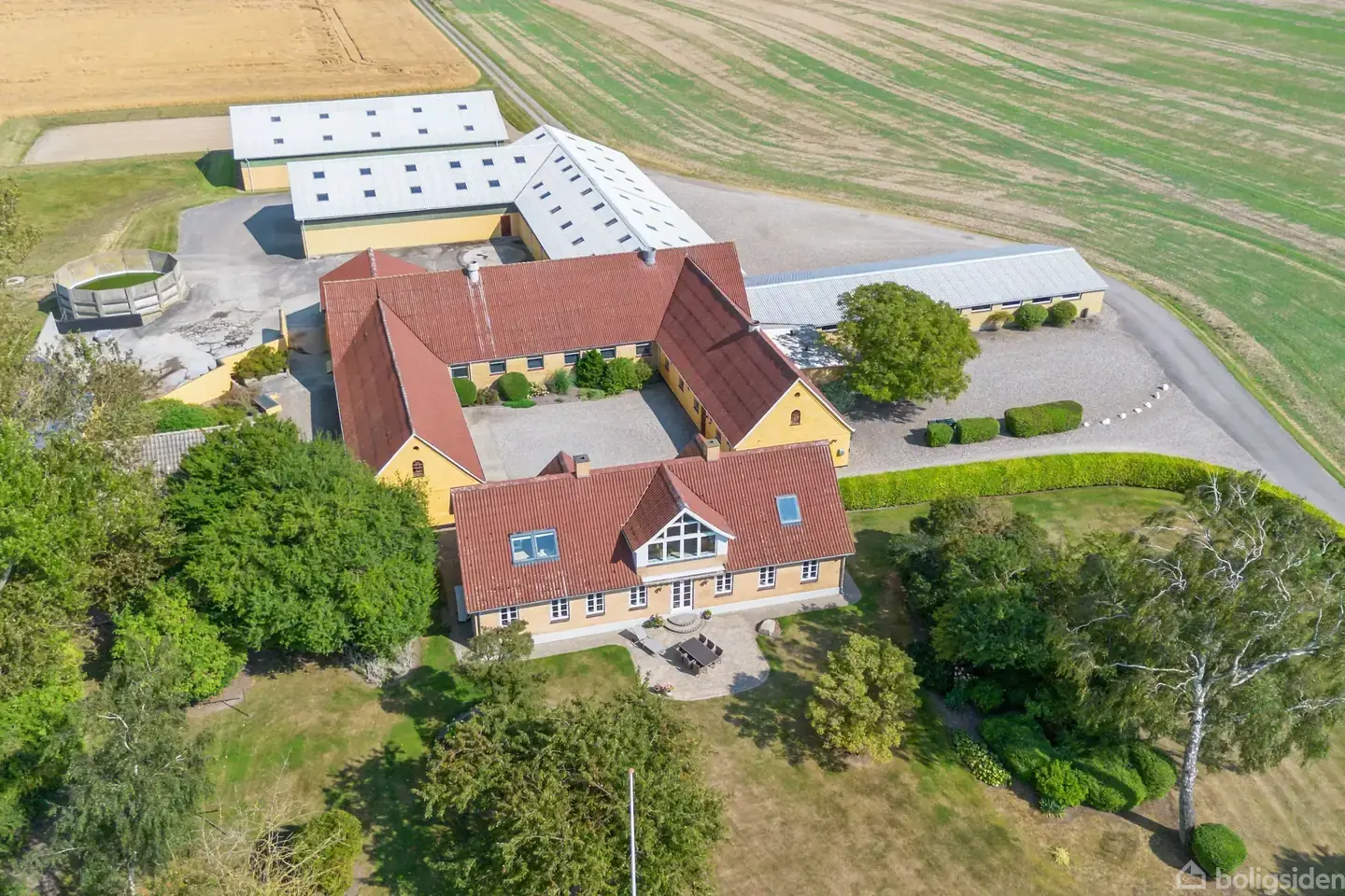 Denne bolig ligger idyllisk placeret i Lundbys grønne landskab – små ti minutters kørsel fra Skælskør bymidte. Her er tale om en nedlagt landbrugsejendom, som byder på utrolig meget plads både ude og inde. Selve hovedhuset er på hele 250 kvadratmeter, og hertil følger flere store længer, heriblandt hestestald, lade, gildesal og dobbeltgarage. Det tilhørende jordstykke er på 11,7 hektar, hvoraf en del er udnyttet til græsfolde. Der er således fine rammer for hestehold, og de mange bonuskvadratmeter skaber selvsagt et væld af muligheder. Taget er skiftet på 2000 m2 driftsbygninger i 2022. Der er etableret ridebane på 20 X 60 meter og ridehus på 19 x 28 meter. Hovedhuset præsenterer sig med velholdt murværk og rødt sadeltag, som har brede kviste. Indenfor er der etableret intet mindre end seks værelser, så selv den store børnefamilie vil let kunne finde sig til rette. Tre af værelserne findes i stueplan, som derudover indeholder et rummeligt spisekøkken og en stor opholdsstue. Stuen kan indrettes med flere sektioner, og den har både pillebrændeovn og dobbeltdør ud til haven. Spisekøkkenet fremstår i et lyst design, og her kan I sagtens være fælles om madlavningen. Etagen afrundes af et badeværelse og et bryggers, og på førstesalen er der endnu et badeværelse og en ekstra stue samt de tre øvrige værelser. Alle værelserne heroppe er ganske store, og det samme gælder badeværelset. Førstesalsstuen er et virkelig dejligt rum med kiploft og fritliggende hanebånd, og det store vinduesparti giver masser af lys og flot udsigt over markerne. Ejendommens store have prydes af gamle træer og frodig beplantning, og den er anlagt med fine bede og en sydvestvendt fliseterrasse. I bosætter jer i fredelige og naturskønne omgivelser, tæt på både skov og vand. Fra hjemmet er der cykelafstand til Kirkeskovsskolen i Rude, hvor skole, SFO, børnehave og vuggestue er samlet på én matrikel. Indkøbene klares som sagt hurtigt i nærliggende Skælskør.