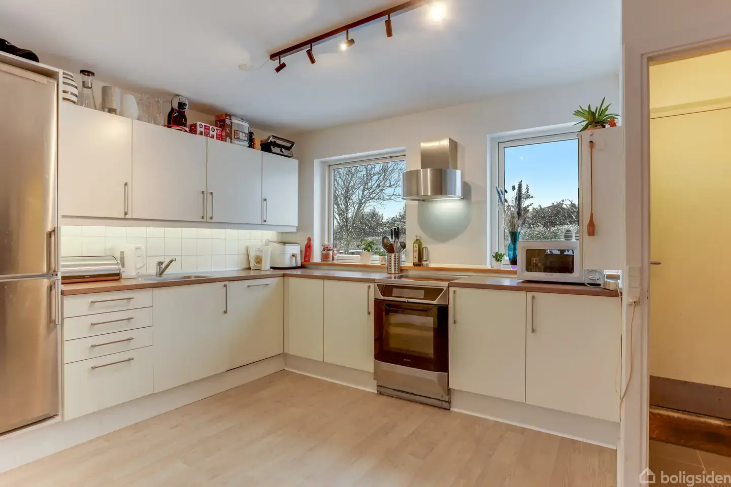 Velkommen til Vitus Berings Vej 31 – et indbydende rækkehus med en attraktiv beliggenhed i Gug, hvor du bor i et roligt kvarter med grønne fællesarealer lige uden for døren. Her er der kort afstand til både indkøbsmuligheder, skole og daginstitutioner, hvilket gør hverdagen nem og overskuelig, uanset om du er børnefamilie, par eller førstegangskøber.Boligen rummer 96 velindrettede kvadratmeter med en ideel planløsning, hvor pladsen er udnyttet optimalt. Rækkehuset fremstår lyst og indbydende, og