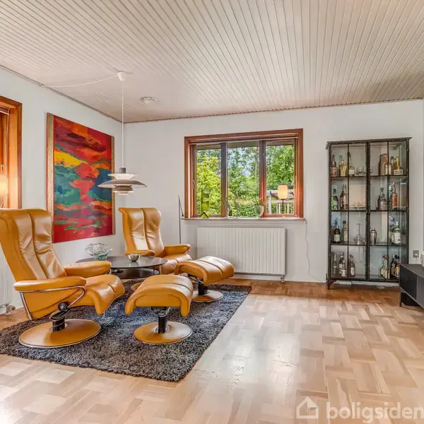 I et af Holstebros mest eftertragtede og naturskønne områder finder du denne indflytningsklare og velholdte villa på Vølundsvej 113. Huset ligger for enden af et lukket vænge med direkte adgang til grønne områder, sø og stisystemer – ideelt for den aktive familie eller dem, der ønsker fred og ro i hverdagen.Villaen byder på 151 m² bolig fordelt på en gennemtænkt planløsning med hele fire værelser, to badeværelser, åbent køkken/alrum, stor stue samt funktionelt bryggers. Her er plads til både bør