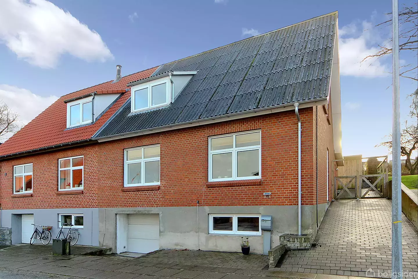 Huset er beliggende på kuperet grund - kun ganske kort afstand fra grønne arealer og med fin udsigt over Kilen og fjorden. Det ligger i gåafstand til centrum med gode indkøbsmuligheder, hyggelig gågade, kulturliv mv. I stueplan er boligen indrettet med bryggers, hvor der er klinkegulv og plads til vaskefaciliteter, spisestue med klinkegulv, lyst og velholdt køkken med muret bue til større opholdsstue, badeværelse med hvidt inventar og sanitet. På 1. sal er der et stort værelse, der er opdelt til soveværelse og træningsrum/værelse, fint hvidt badeværelse samt værelse med faste skabe. I kælderplan er der indrettet garage, vaskerum og disponibelt rum. Huset er vedligeholdt og løbende moderniseret igennem årene. Haven vender mod syd og er anlagt med fliseterrasse og græsplæne.