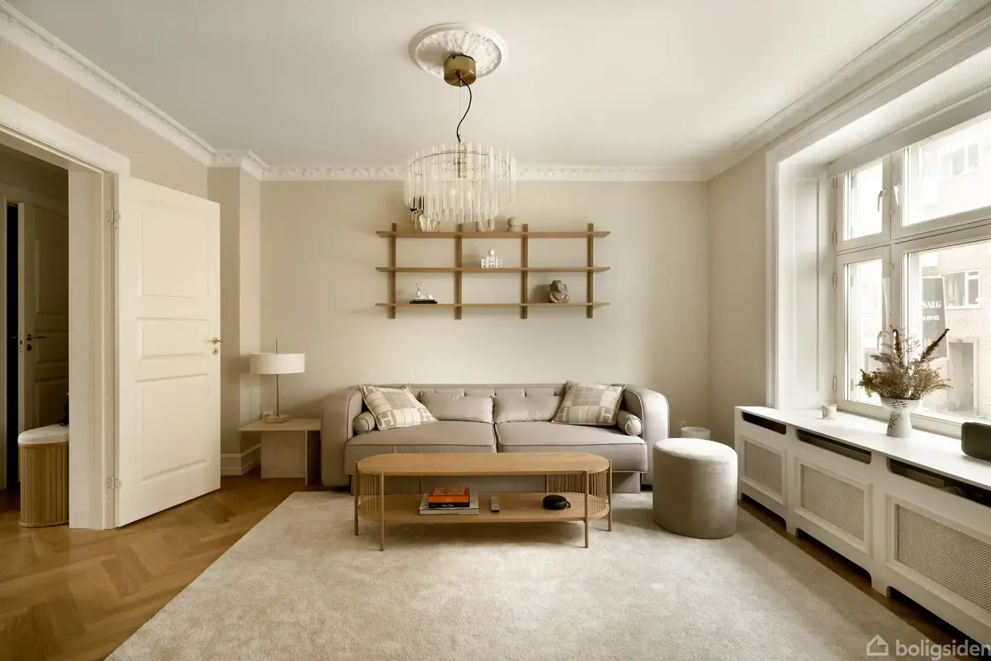 Indflytningsklar 3-værelses lejlighed med sildebensgulve – på grænsen til Nordhavn