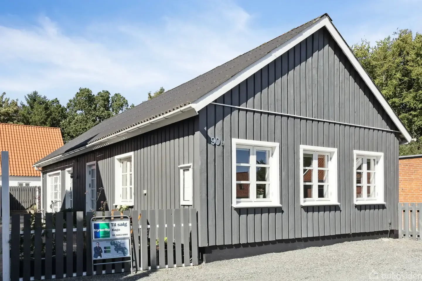 Velkommen til en lys og indbydende bolig i Herfølge – med egen terrasse, moderne indretning og en tryg beliggenhed tæt på alt, hvad hverdagen kræver. Her får I en sjælden kombination af charme, funktionalitet og nem adgang til både byliv og natur. INDRETNING Indenfor venter 90 veldisponerede kvadratmeter med en varm og indbydende atmosfære. Boligen byder på en åben stue og køkken i ét, hvor de lyse trægulve, hvide vægge og store vinduespartier skaber et lyst og luftigt rum. Det hvide køkken m