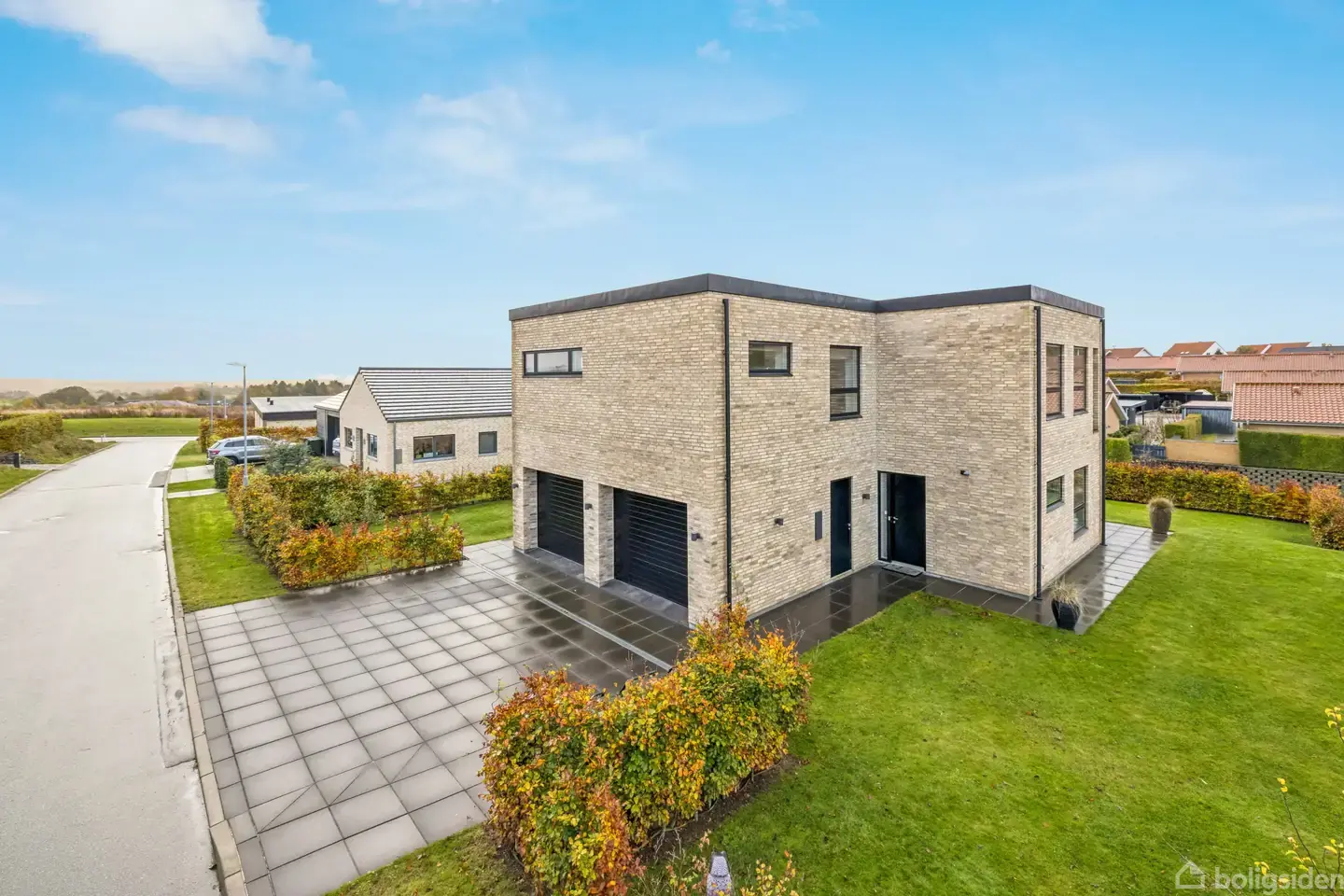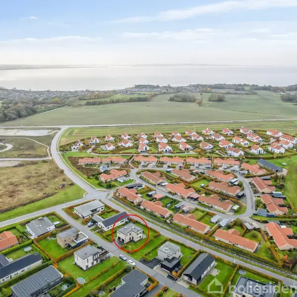 På Vorregårdsparken 5 finder I denne moderne og fuldmurede funkisvilla fra 2020, opført i kvalitetsmaterialer med fokus på funktionalitet og design. Her får I 169 m² bolig samt en integreret dobbeltgarage på hele 41 m² med , gulvvarme og klargjort til elbil – ideelt til den moderne familie, der ønsker komfort og gennemtænkte løsninger.Boligen er placeret på en rolig, blind vej i det attraktive Ugelbølle og byder på en fantastisk udsigt til Kalø Vig, skoven og Rønde. Det arkitektoniske udtryk er