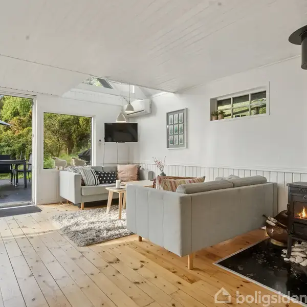 Wiegårdsvej 6B – Sommerhus med udsigt, natur og aktiviteter tæt ved HobroHvis du drømmer om et sted, hvor natur, ro og udsigt smelter sammen, er Wiegårdsvej 6B et ganske særligt fristed. Her får du et charmerende sommerhus på 62 m², hvor de store vinduespartier trækker lyset ind og giver dig en storslået panoramaudsigt over Mariager Fjord. Det er en udsigt, der aldrig bliver ens – et levende maleri, der skifter udtryk med årstidernes farver og stemninger, og som kan nydes både fra stuen og den s